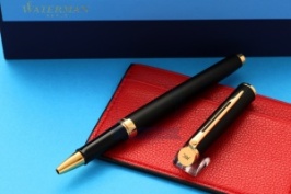 Pióro kulkowe Waterman Hémisphère Czerń Matowa GT w granatowym pudełku zamszowym