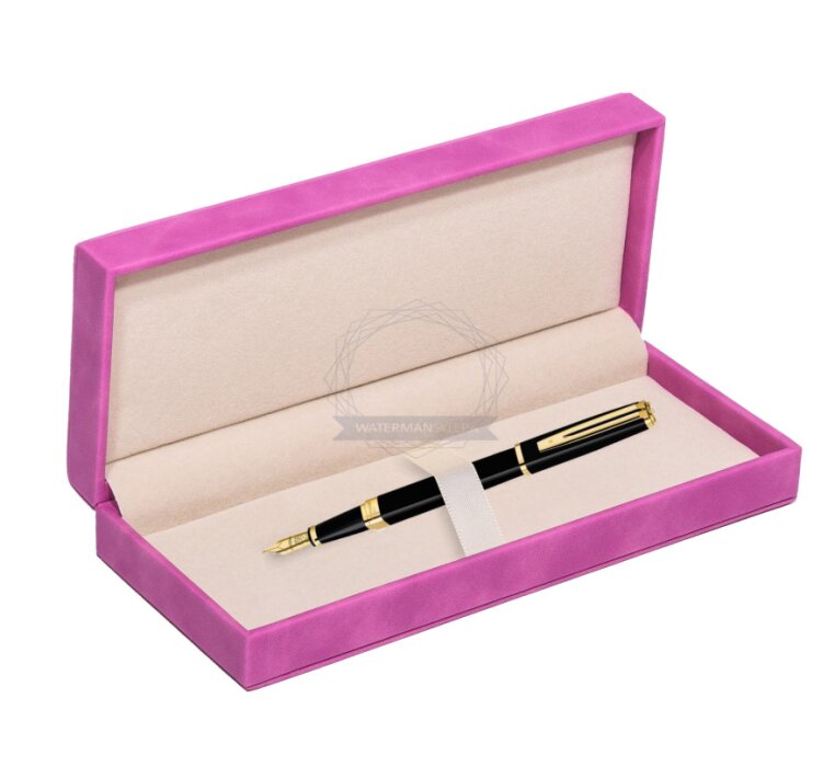 Pióro wieczne Waterman Exception Slim Laka Czarna GT w różowym pudełku zamszowym