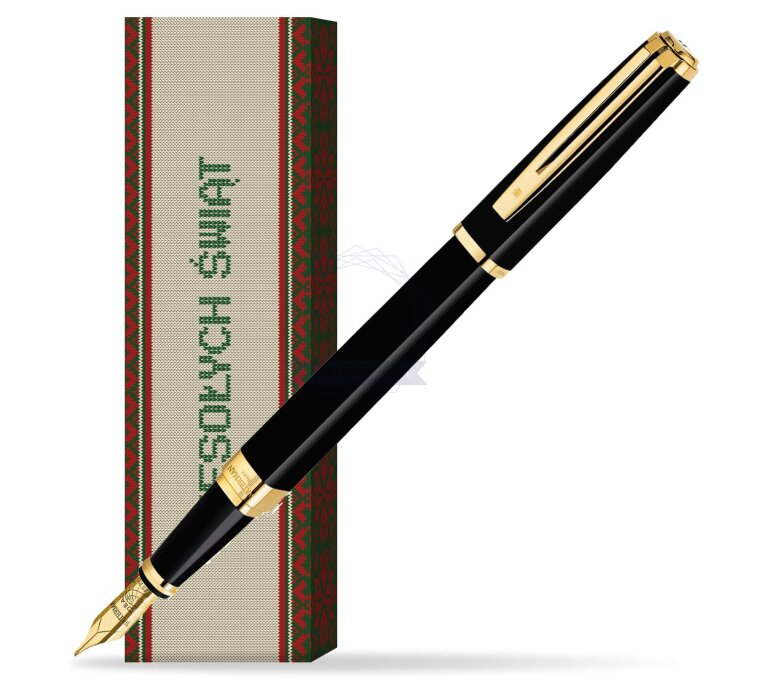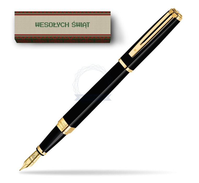 Pióro wieczne Waterman Exception Slim Laka Czarna GT w obwolucie Wesołych Świąt wzór 3 (S0636930_O143C)