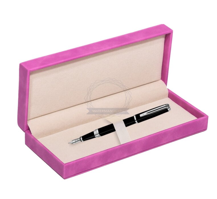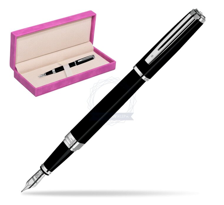 Pióro wieczne Waterman Exception Slim Laka Czarna ST w pudełku zamszowym fuksja (S0637010_165FUCH)