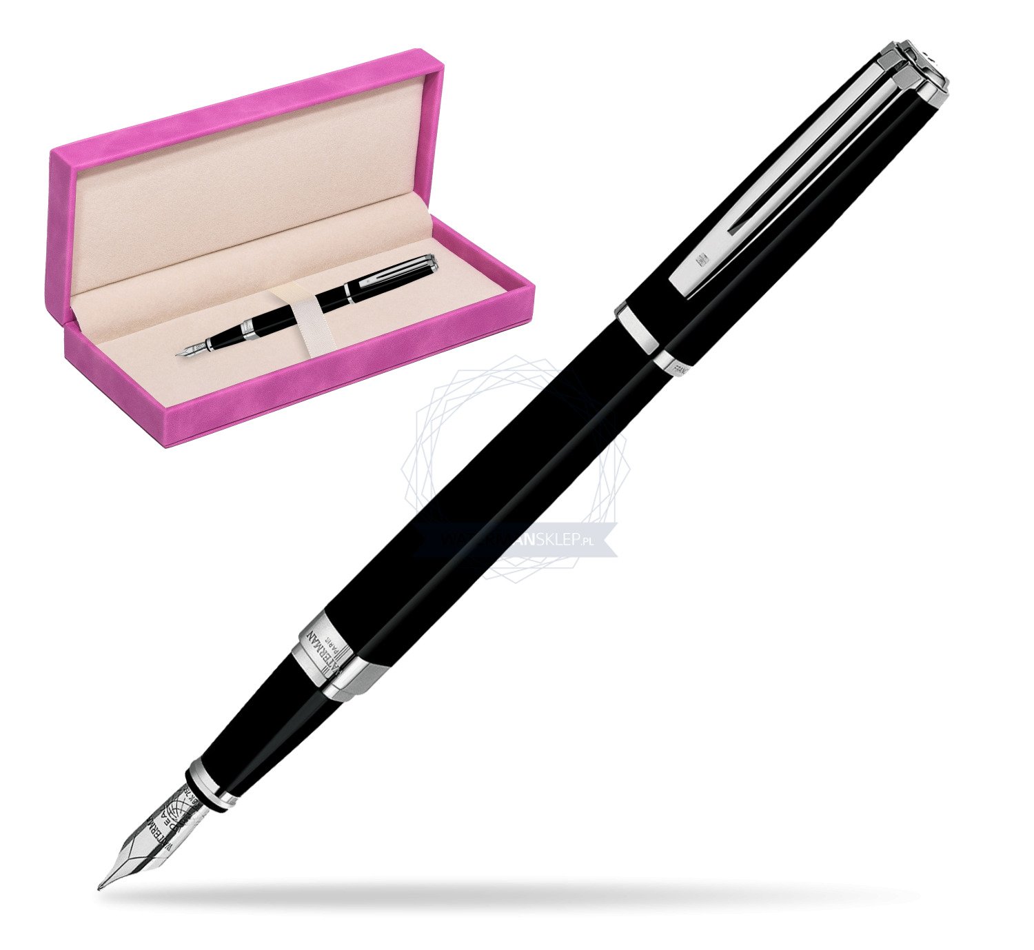 | W zestawie | Pióro wieczne, eleganckie firmowe pudełko Waterman lub inne wybrane, tłoczek, nabój startowy |