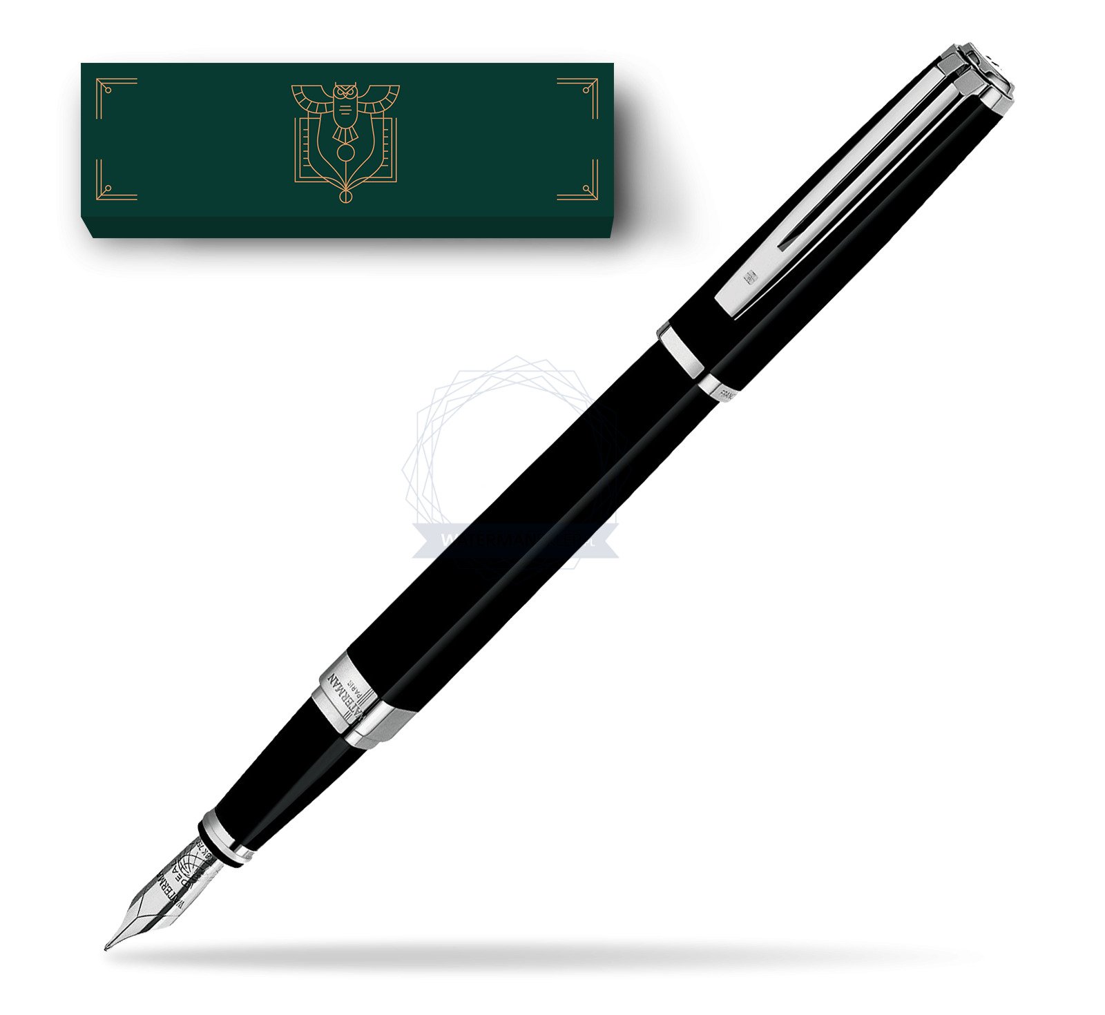 | W zestawie | Pióro wieczne, eleganckie firmowe pudełko Waterman lub inne wybrane, tłoczek, nabój startowy |