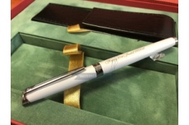 Lśniące, pokryte białym lakierem korpus i nasadka idealnie współgrają z błyszczącymi elementami wykończenia pokrytymi palladem. Pióro wyposażone jest w stalówkę w rozmiarze F z wysokiej jakości stali nierdzewnej.