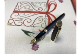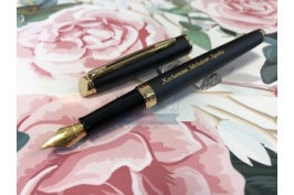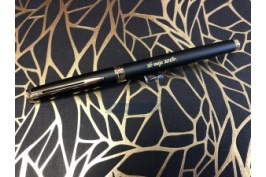 Czarny matowo-satynowy korpus wraz z nasadką stanowią świetne połączenie z kontrastującymi, platerowanymi 23-karatowym złotem wykończeniami. Pióro wyposażone jest w stalówkę z wysokiej jakości stali platerowanej 23-karatowym złotem.