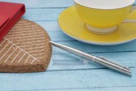Długopis wykonany z najwyższej klasy stali nierdzewnej i jest wyposażony w obrotowy mechanizm wysuwania wkładu.