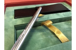 Pióro wyposażone jest w stalówkę z wysokiej jakości stali. Korpus i nasadka w kolorze stali o eleganckim, satynowym połysku. Wykończenia chromowane.
