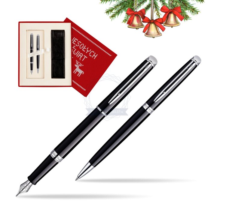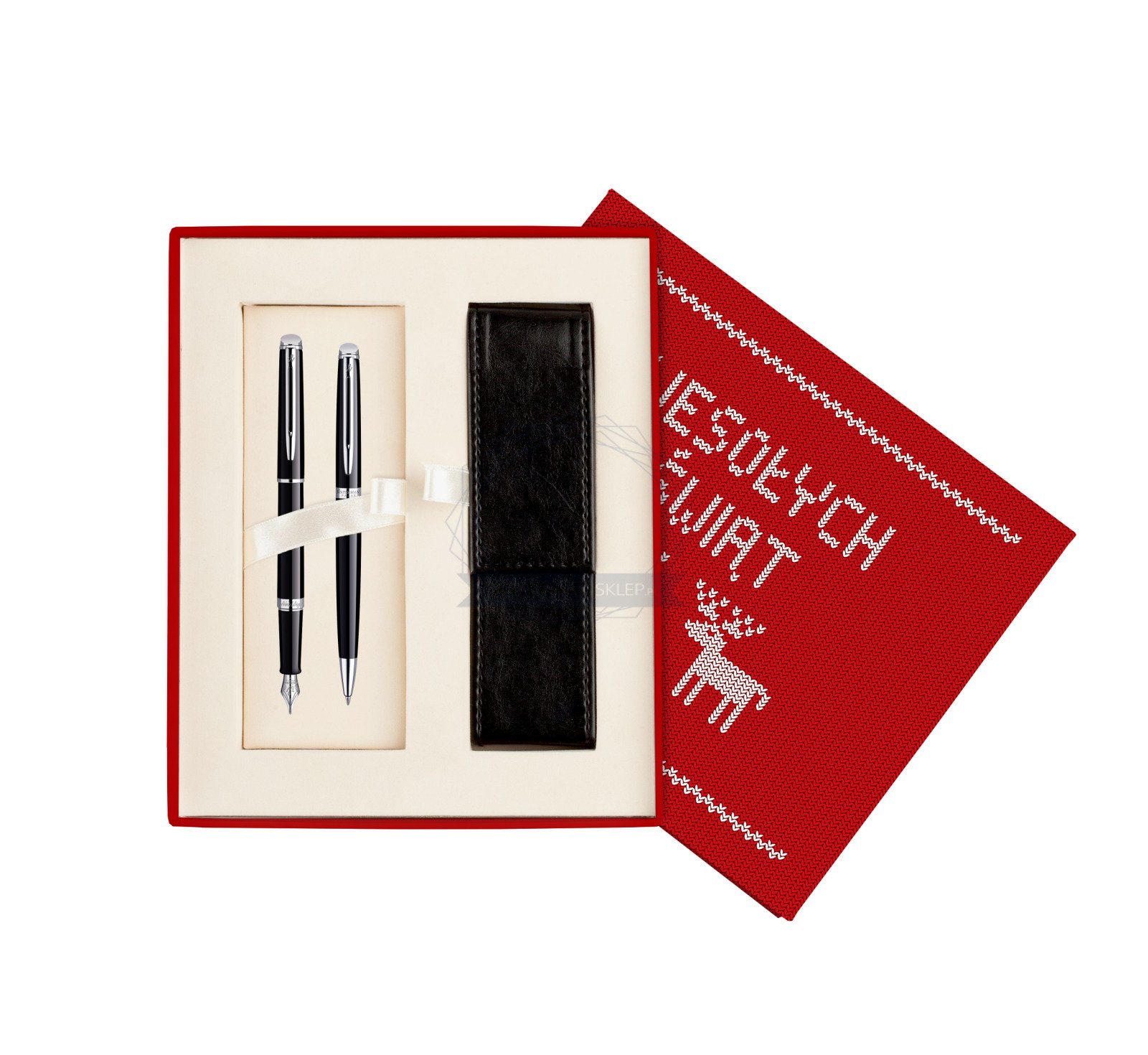 Zestaw prezentowy pióro wieczne + długopis Waterman Hémisphère Czerń CT w pudełku Wesołych Świąt czerwone (S0920510_S0920570_S0113S)