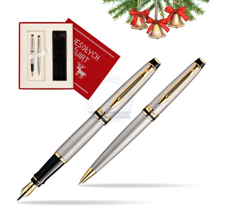 Zestaw prezentowy pióro wieczne + długopis Waterman Expert Stalowy GT w pudełku Magia Świąt