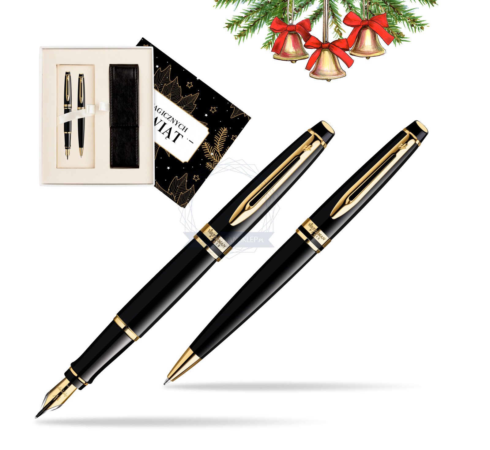 Zestaw prezentowy pióro wieczne + długopis Waterman Expert Czarny GT w pudełku Magia Świąt