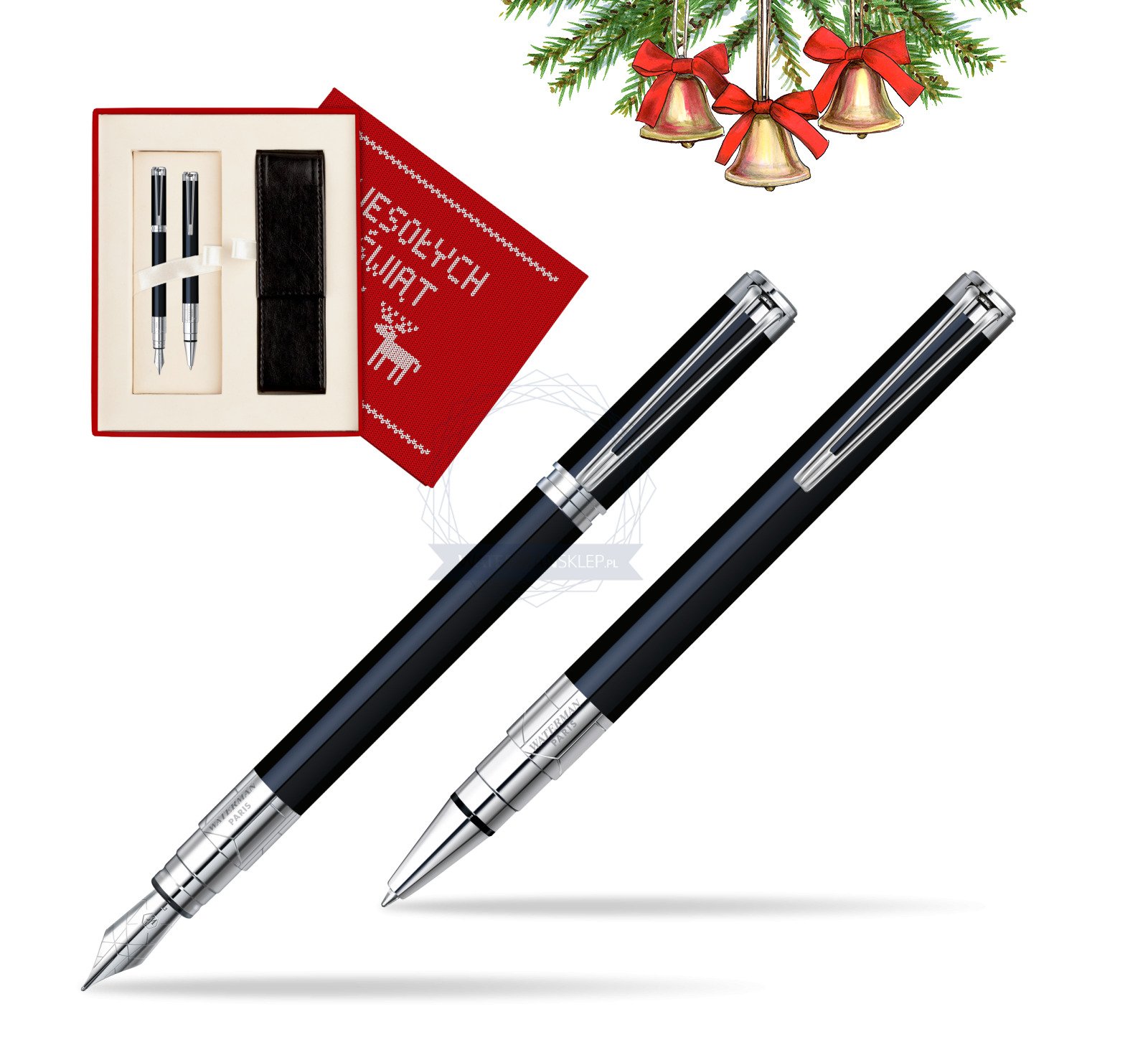 Zestaw prezentowy pióro wieczne + długopis Waterman Perspective Czarny CT w pudełku Wesołych Świąt czerwone
