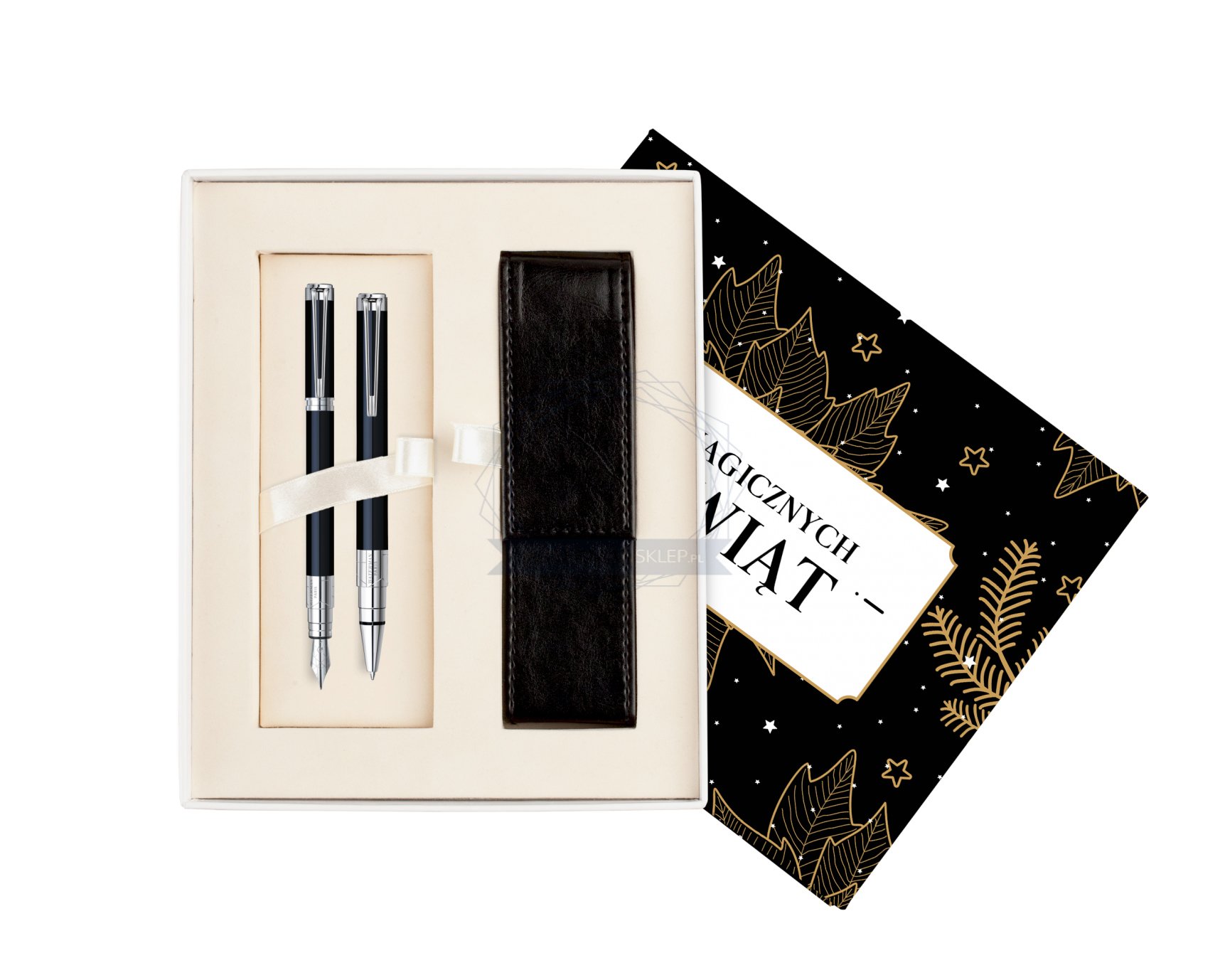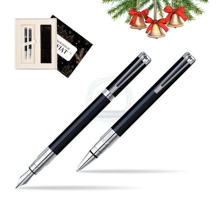 Zestaw prezentowy pióro wieczne + długopis Waterman Perspective Czarny CT w pudełku Magia Świąt (S0830660_S0830760_S0116S)