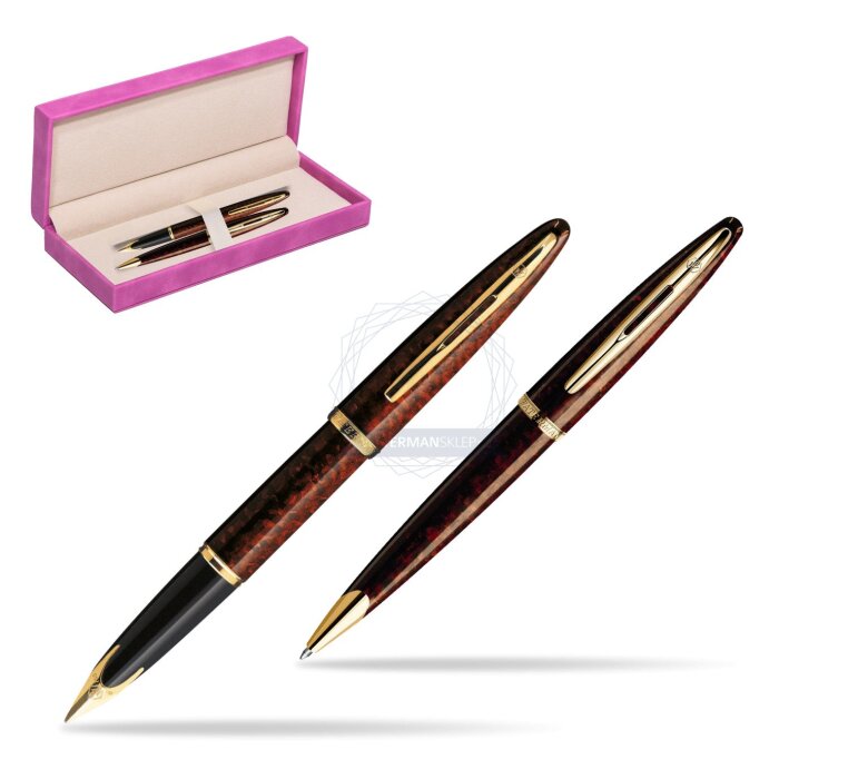 Zestaw prezentowy pióro wieczne + długopis Waterman Carène Morski Bursztyn GT w pudełku zamszowym fuksja (S0700860_S0700940_165FUCH)