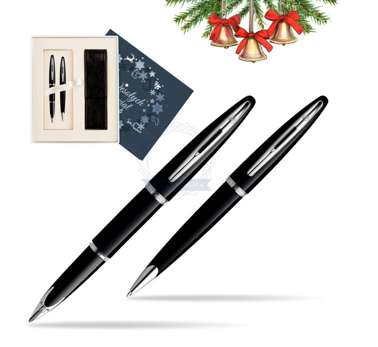 Zestaw prezentowy pióro wieczne + długopis Waterman Carène Morze Czarne ST w pudełku Wesołych Świąt granatowe (S0293970_S0293950_S0111S)