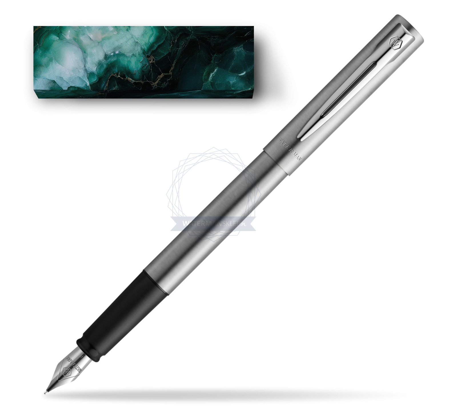 Pióro wieczne Waterman Allure Stal CT w obwolucie Turkusowy Marmur