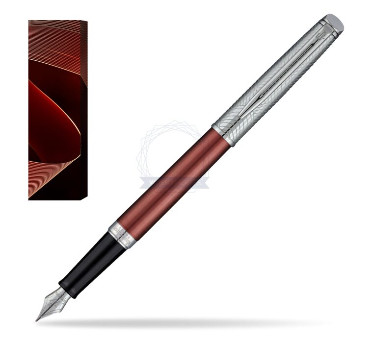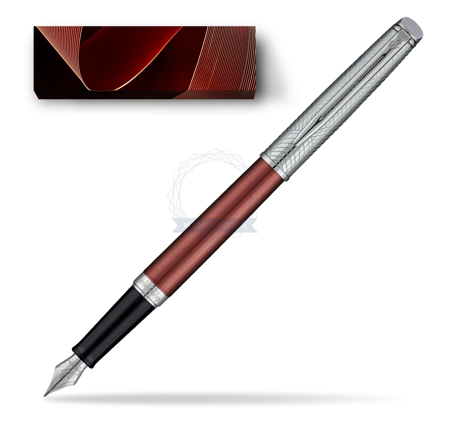 Pióro w oryginalnym, miedzianym odcieniu różu z limitowanej kolekcji La Privée. Wyposażone w grawerowaną nasadkę z platerowanej palladem stali nierdzewnej oraz cienko piszącą stalówkę (F). Posiada pierścień z emblematem Waterman Paris. Połyskująca srebrna nasadka została ozdobiona satynowym wzorem - pokazuje on profesjonalizm marki Waterman w grawerowaniu laserem. Pióro pozwala pokazać wyrafinowane piękno i z dumą prezentuje wyszukany styl. Korpus ze szczotkowanej stali nierdzewnej pokrytej lakierem w kolorze miedzianego różu stanowi doskonałe połączenie ze zdobioną skuwką.