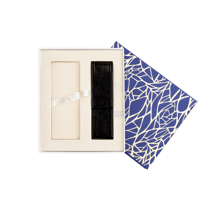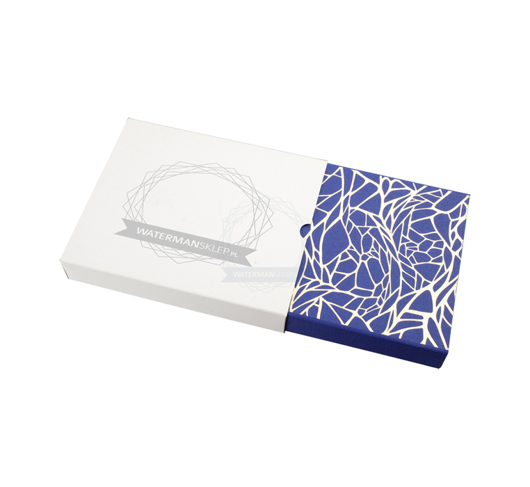 Proponujemy Państwu eleganckie pudełko prezentowe "hand made" o "drewnianej" fakturze powierzchni, przeznaczone na dwa produkty Waterman. Powierzchnia pudełka powleczono specjalnym płótnem.Tłoczone wzorkiem na powierzchni. Pudełko zawiera stylowe etui wykonane z czarnej ekoskóry. Wyściełane atłasem, posiada eleganckie, prezentowe tasiemki. Zamykane na magnes.