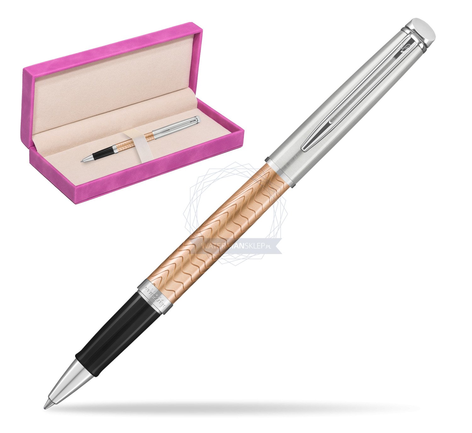 Pióro kulkowe Waterman Hémisphère Deluxe Rose Wave CT w pudełku zamszowym fuksja (2043235_165FUCH)