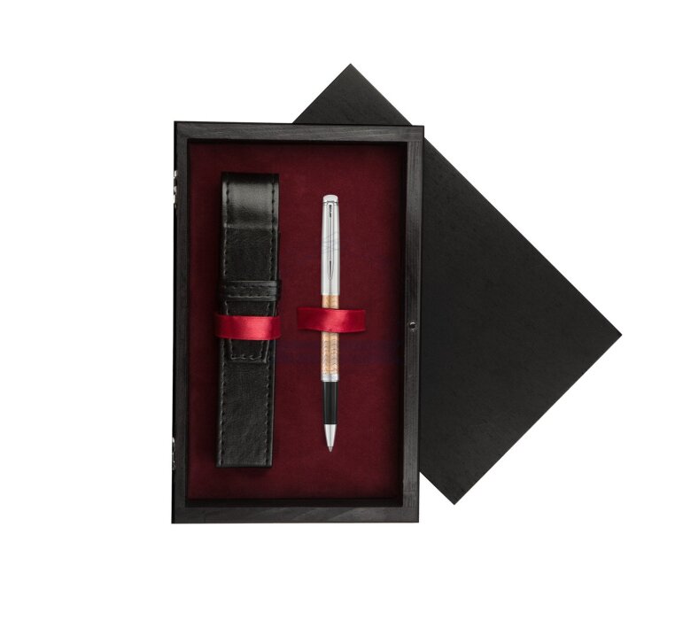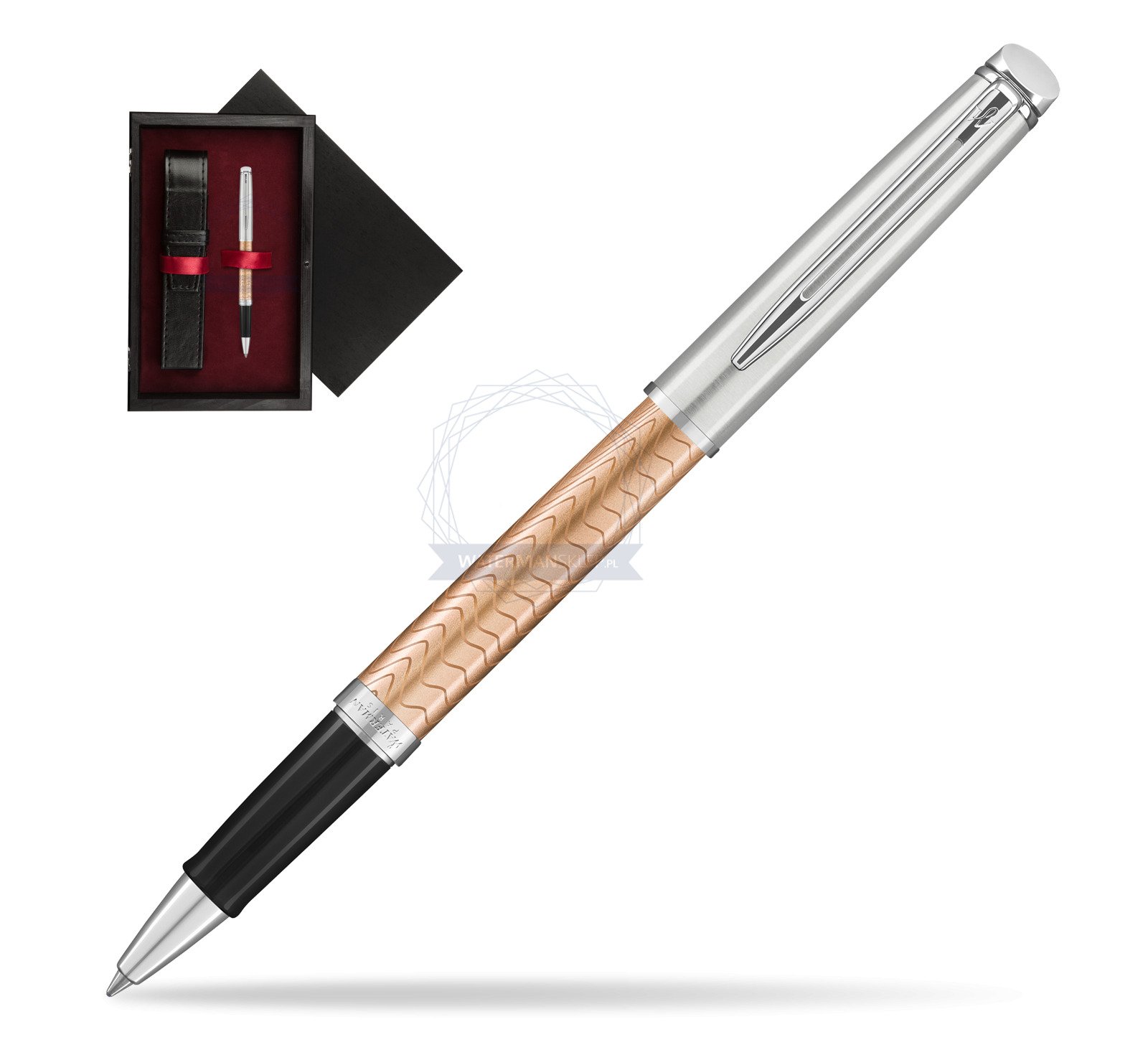 Pióro kulkowe Waterman Hémisphère Deluxe Rose Wave CT w pudełku drewnianym Czerń Single Bordo (2043235_C1B)