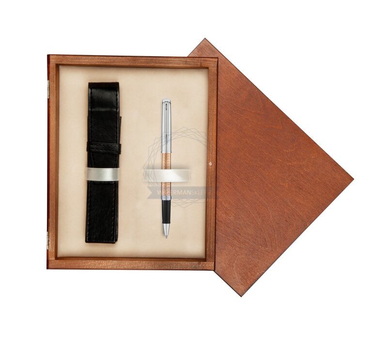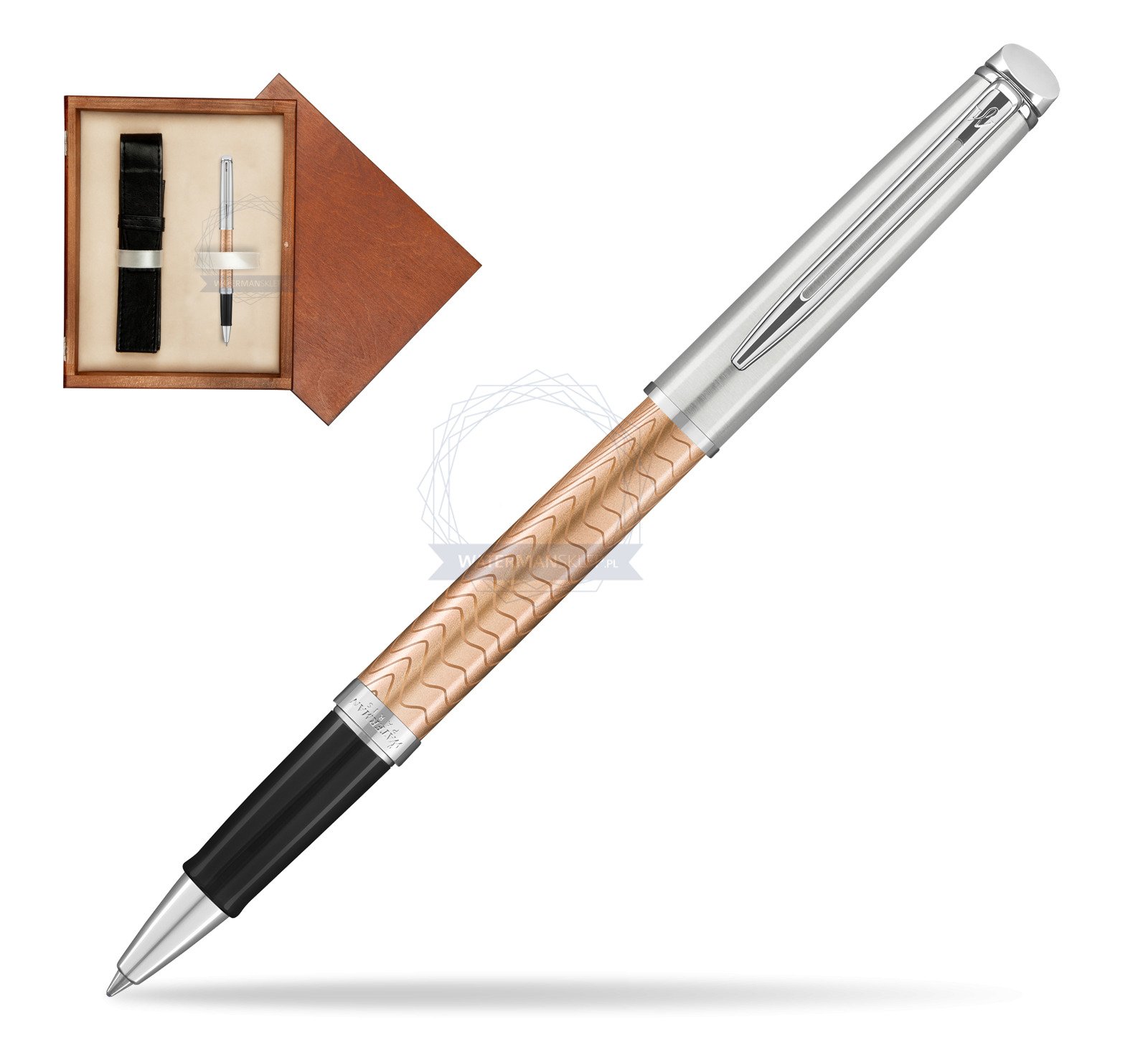 Pióro kulkowe Waterman Hémisphère Deluxe Rose Wave CT w pudełku drewnianym Mahoń Single Ecru (2043235_M1E)