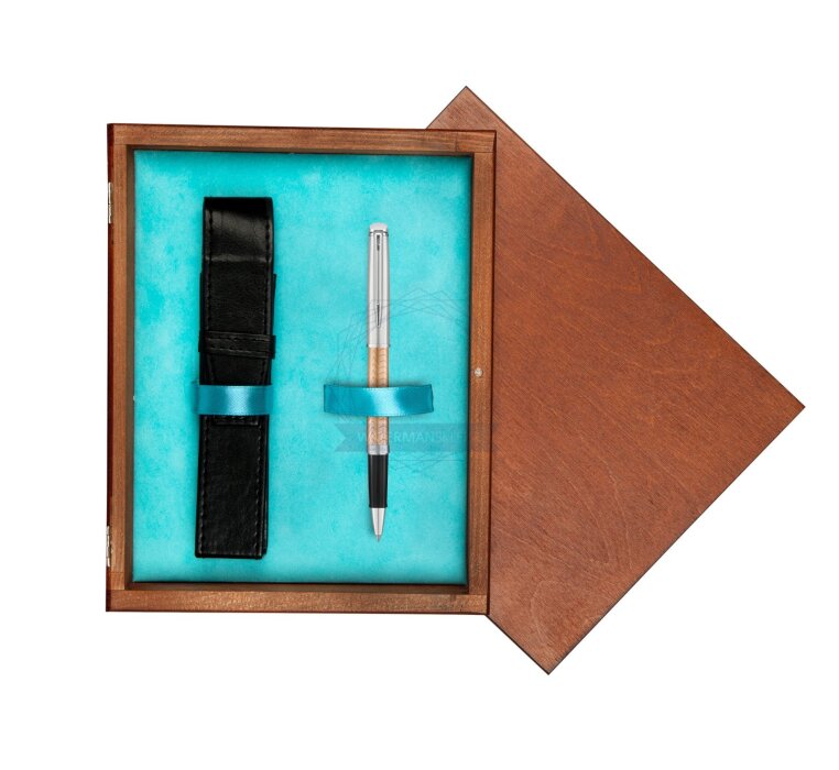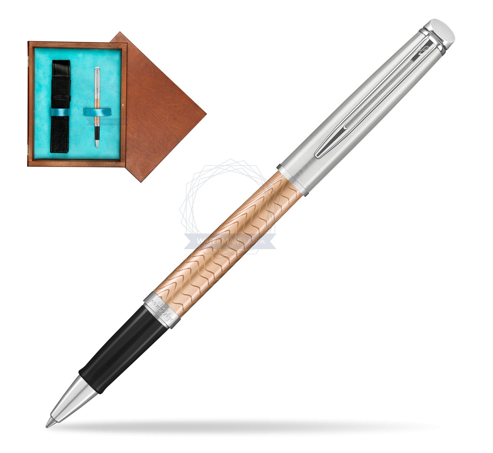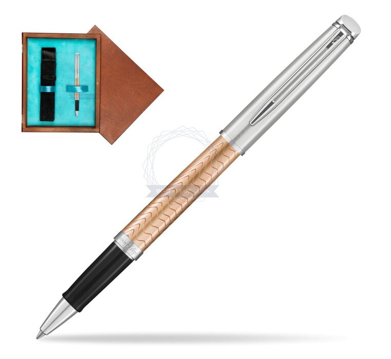 Pióro kulkowe Waterman Hémisphère Deluxe Rose Wave CT w pudełku drewnianym Mahoń Single Turkus (2043235_M1T)