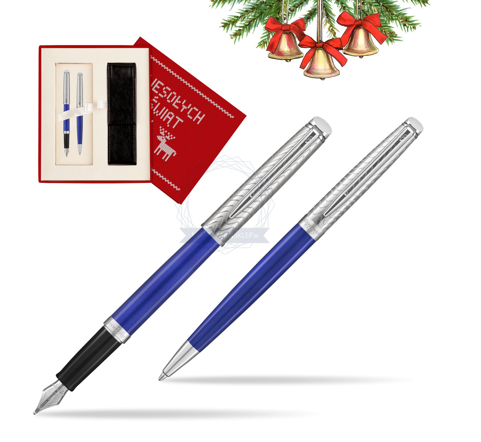 Zestaw prezentowy pióro wieczne + długopis Waterman Hémisphère 2018 Deluxe Blue Wave CT w pudełku Wesołych Świąt czerwone (2043217_2043218_S0113S)