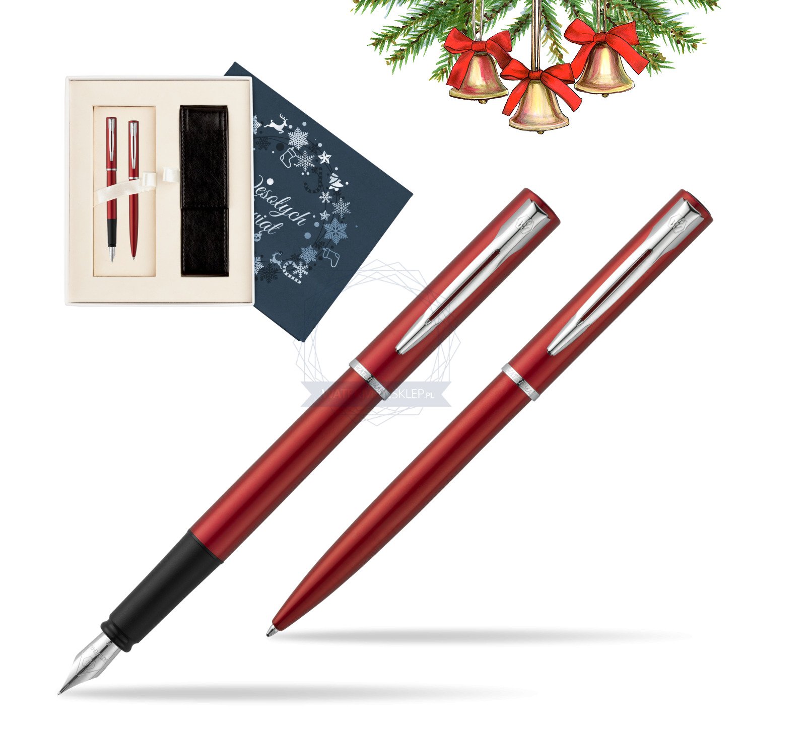 Zestaw prezentowy pióro wieczne + długopis Waterman Allure czerwony CT w pudełku Wesołych Świąt granatowe (2068194_2068193_S0111S)