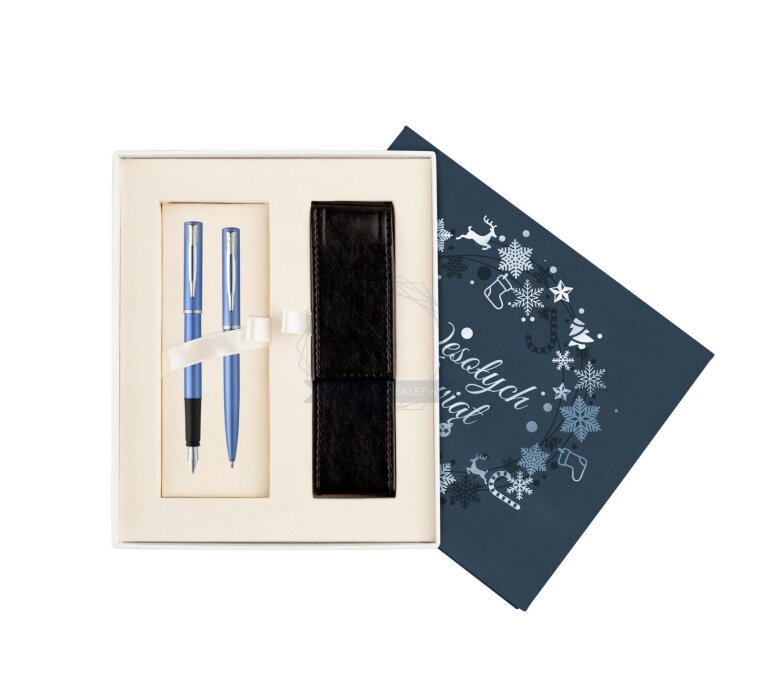 Zestaw prezentowy pióro wieczne + długopis Waterman Allure niebieski CT w pudełku Wesołych Świąt granatowe (2068195_2068191_S0111S)