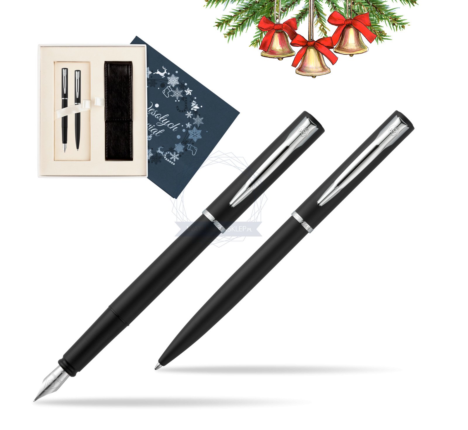 Zestaw prezentowy pióro wieczne + długopis Waterman Allure czarny mat CT w pudełku Wesołych Świąt granatowe (2068196_2068192_S0111S)