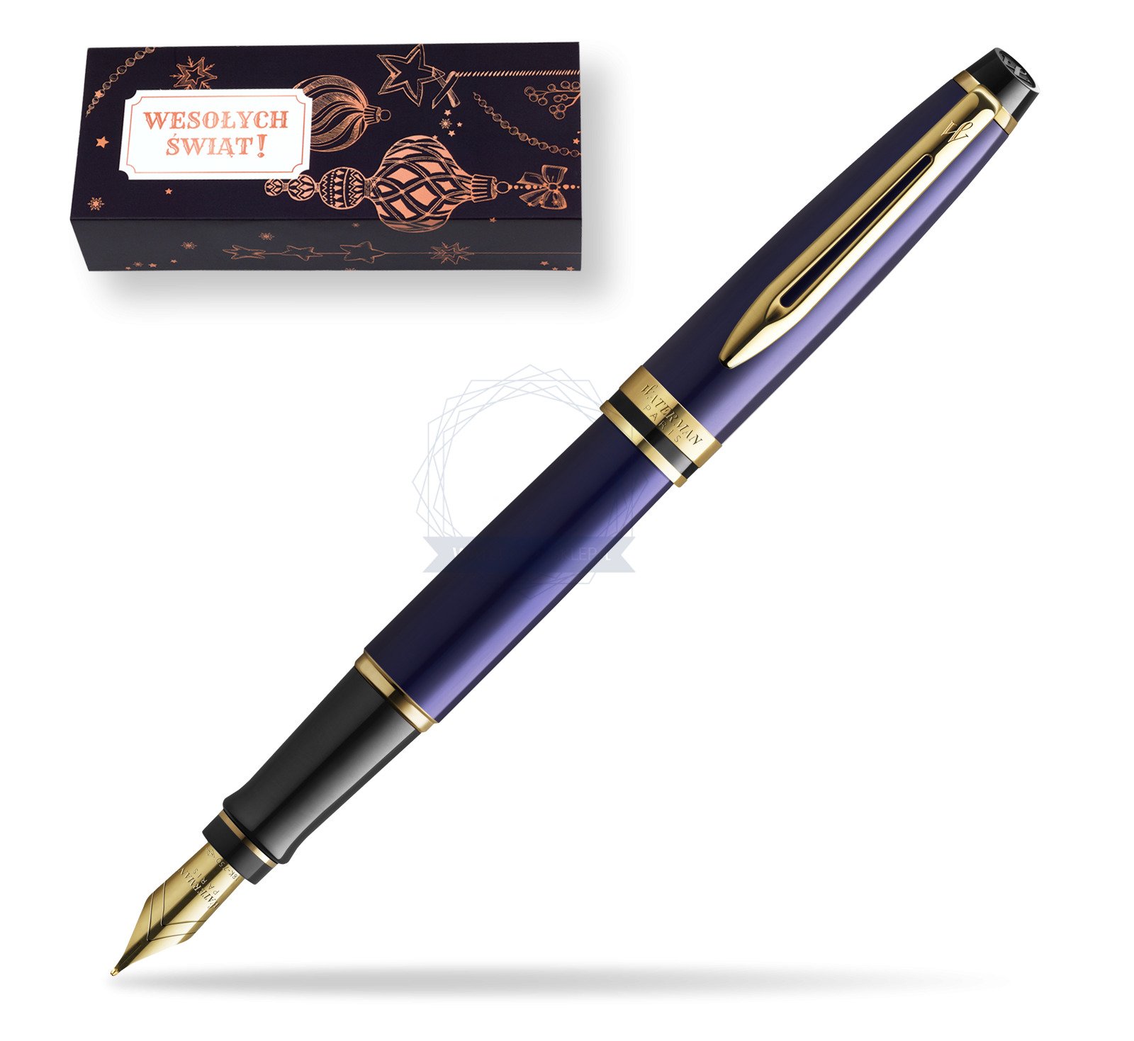 Pióro wieczne Waterman Expert Granatowy GT Złota stalówka 18k. w obwolucie Wesołych Świąt wzór 3