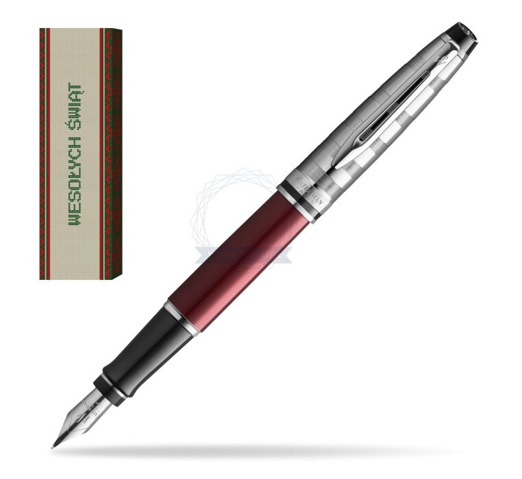 Pióro wieczne Waterman Expert DeLuxe Ciemnoczerwony w obwolucie Wesołych Świąt wzór 3 (2093658_O143C)