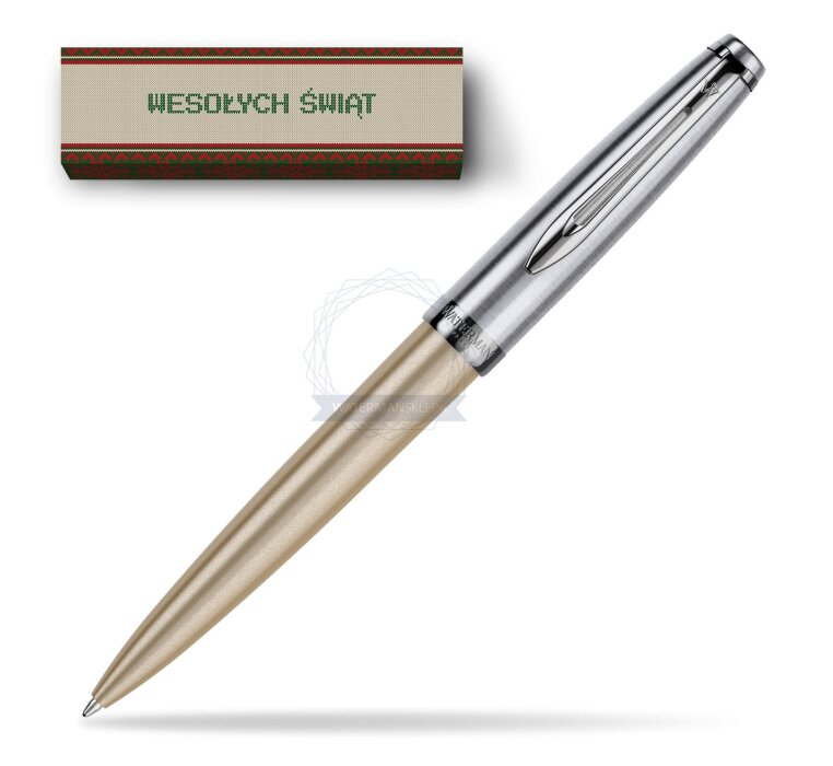 Długopis Waterman Embleme DeLuxe Metaliczny Złoty w obwolucie Wesołych Świąt wzór 3 (2103038_O143A)