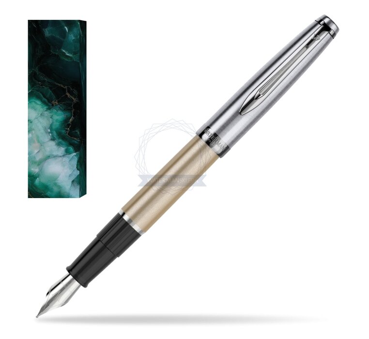 Pióro wieczne Waterman Embleme DeLuxe Metaliczny Złoty w obwolucie Turkusowy Marmur (2103035_O142A)
