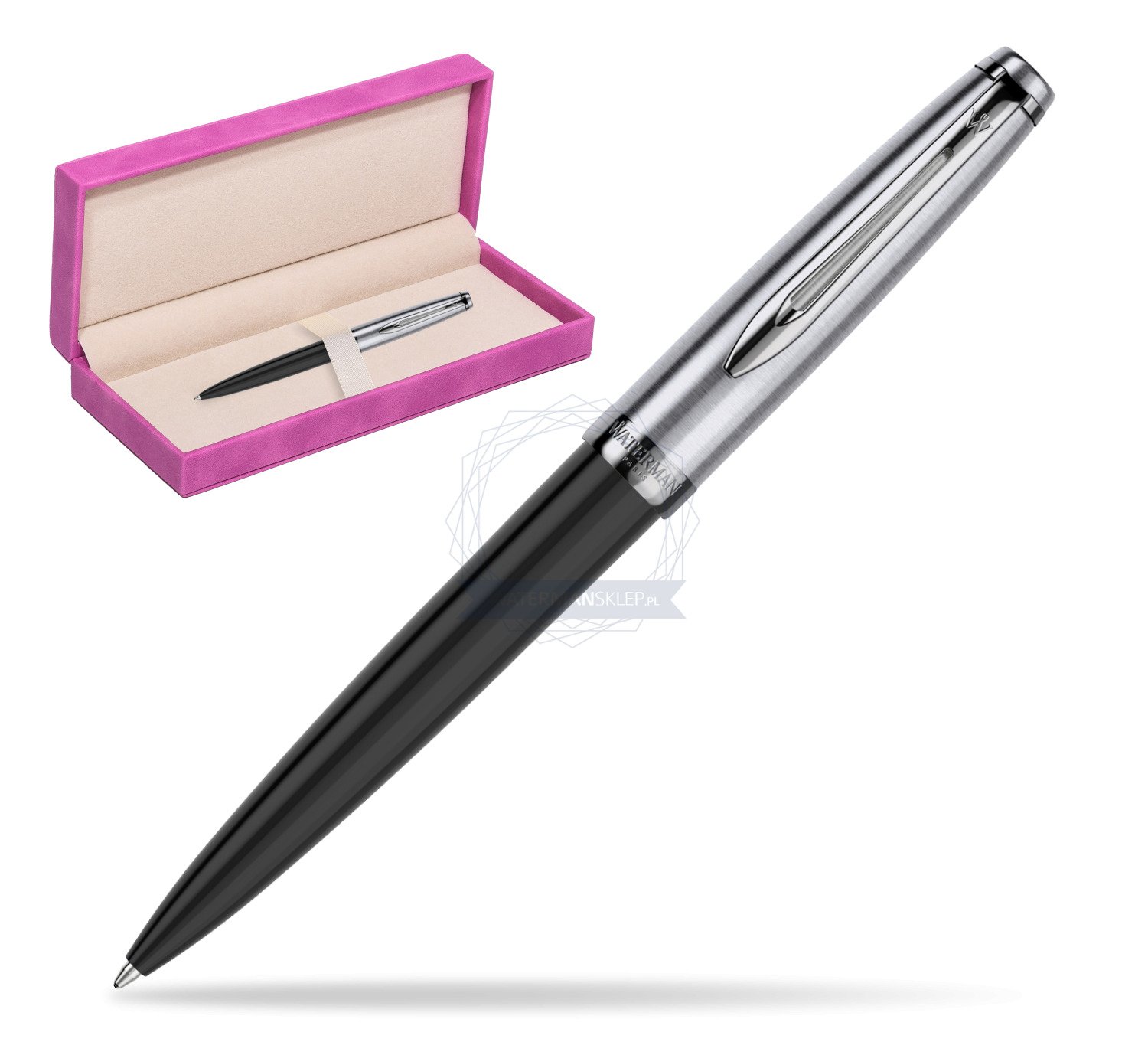 Długopis Waterman Embleme Core Czarny w pudełku zamszowym fuksja (2157233_165FUCH)
