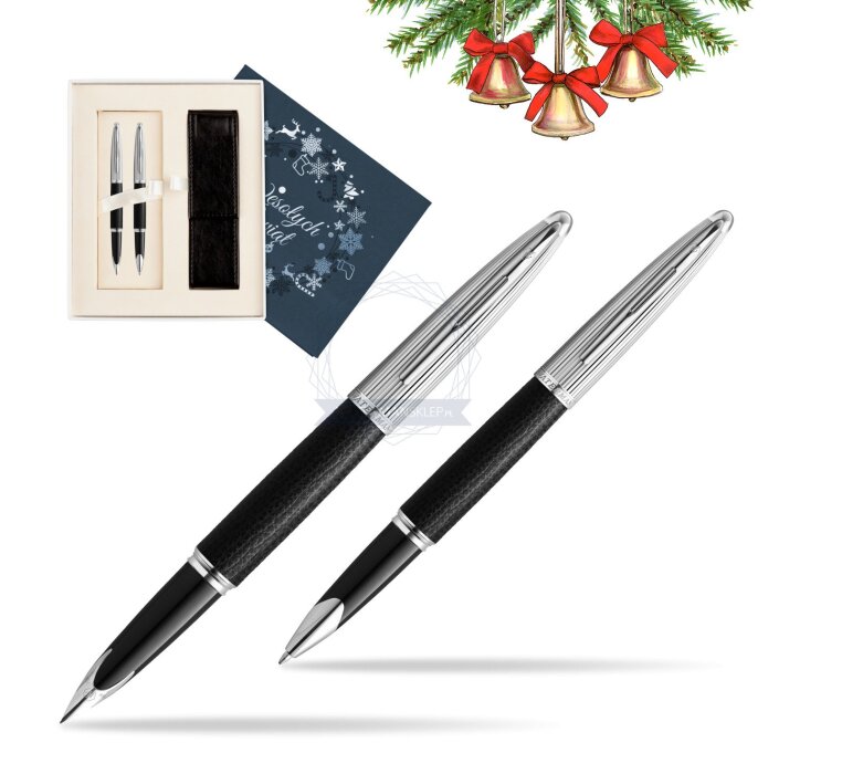 Zestaw prezentowy pióro wieczne + pióro kulkowe Waterman Carene Leather Czarny w pudełku Wesołych Świąt granatowe (2099564_2099566_S0111S)