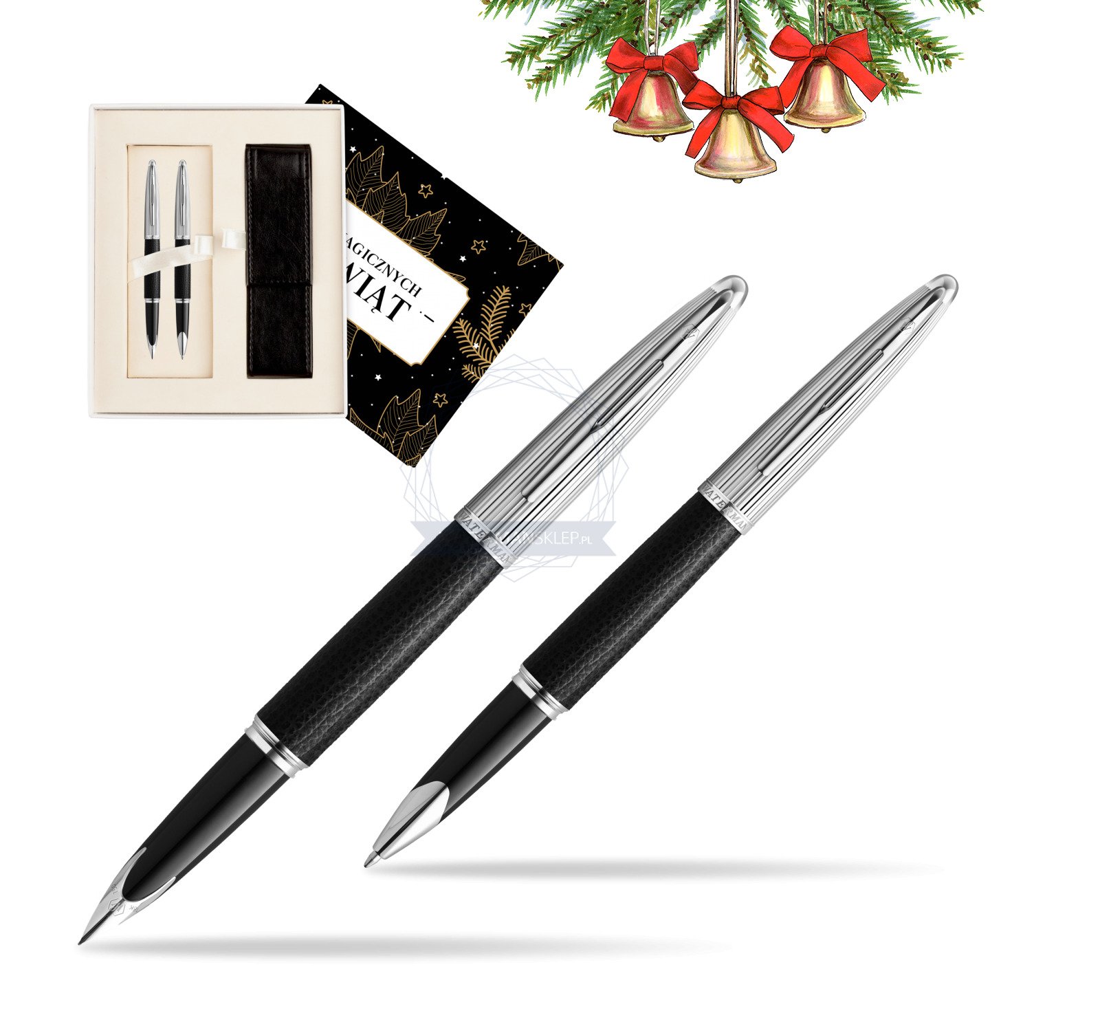 Zestaw prezentowy pióro wieczne + pióro kulkowe Waterman Carene Leather Czarny w pudełku Magia Świąt (2099564_2099566_S0116S)