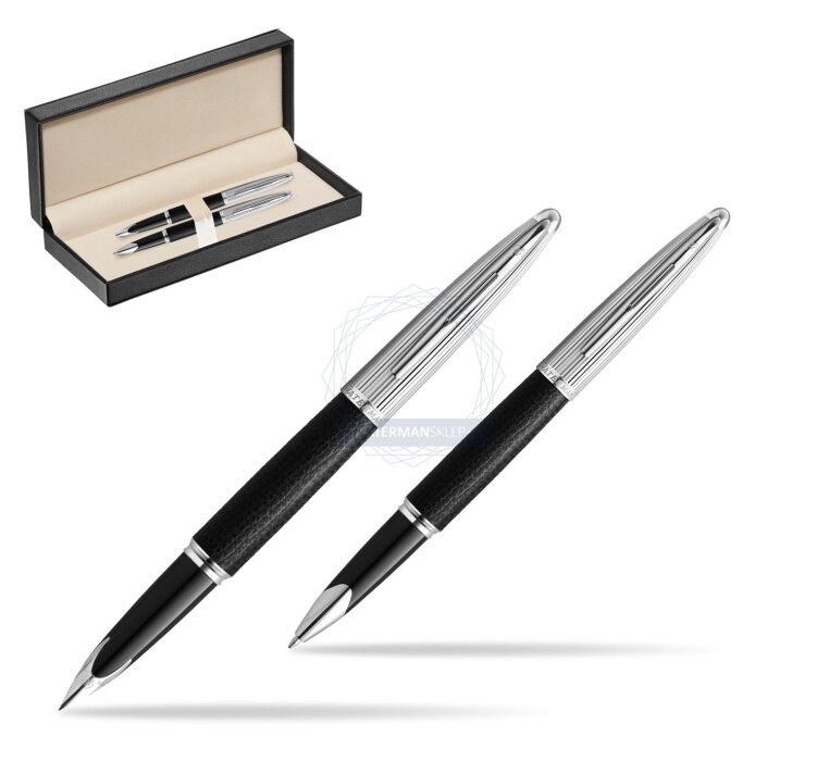 Zestaw prezentowy pióro wieczne + pióro kulkowe Waterman Carene Leather Czarny w pudełku classic pure black (2099564_2099566_165BOX)