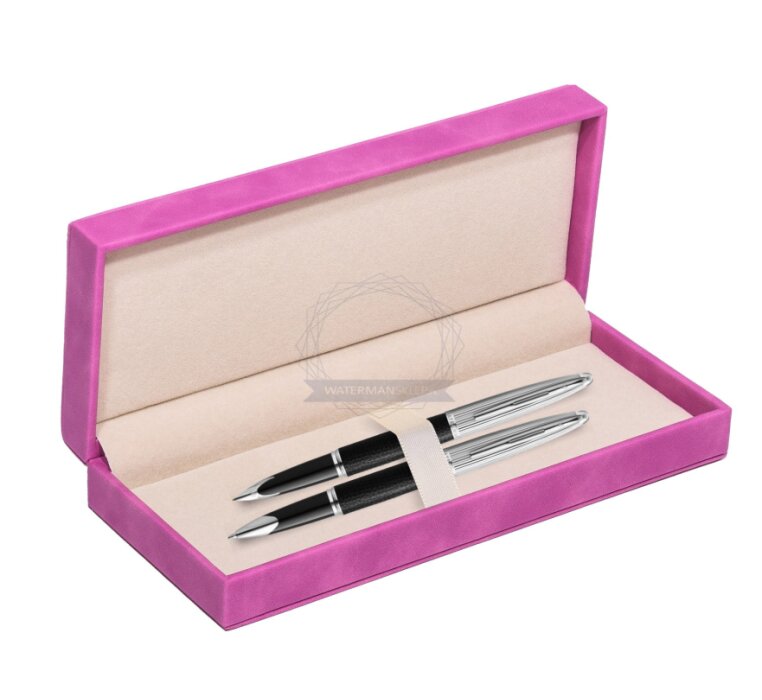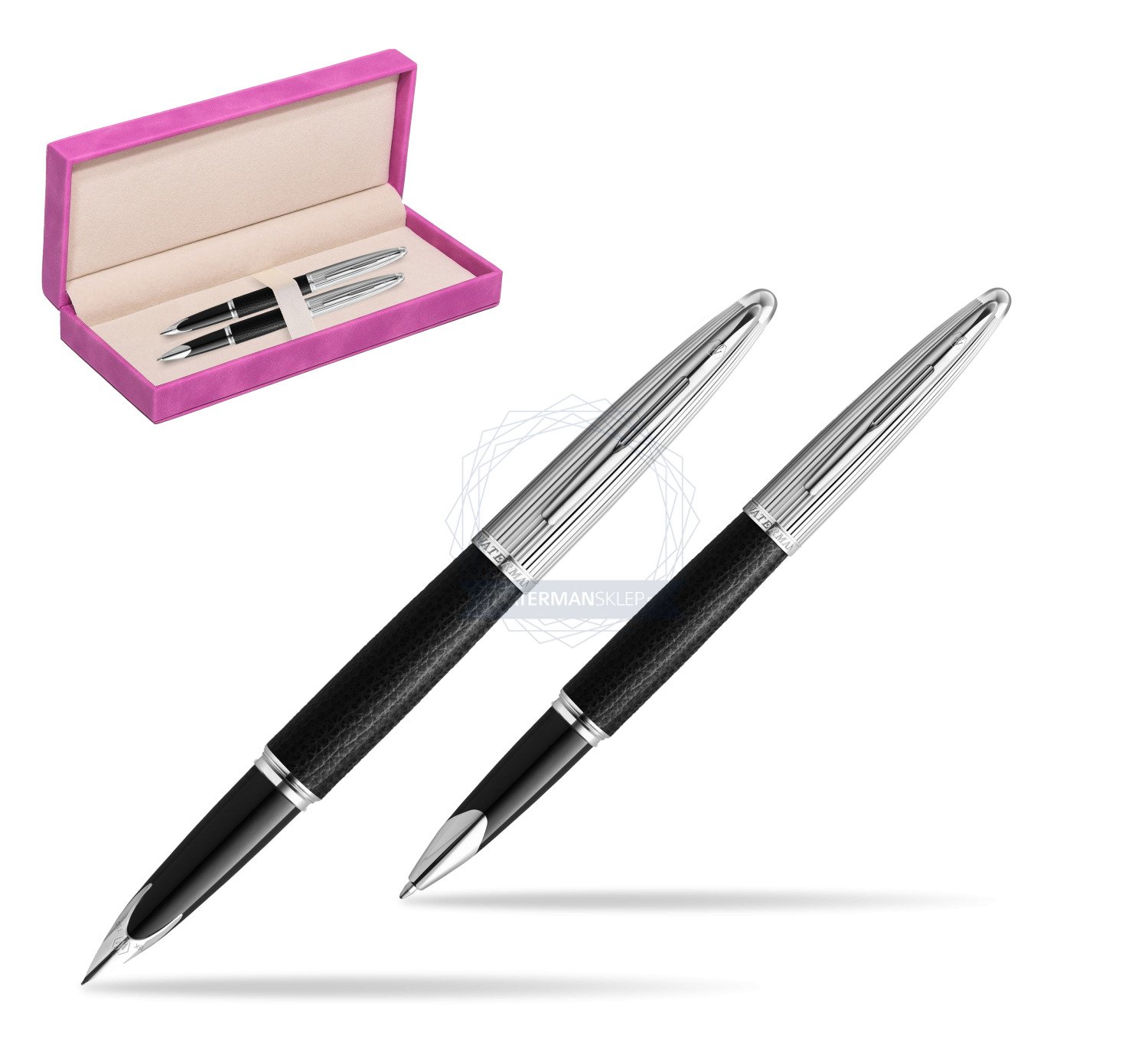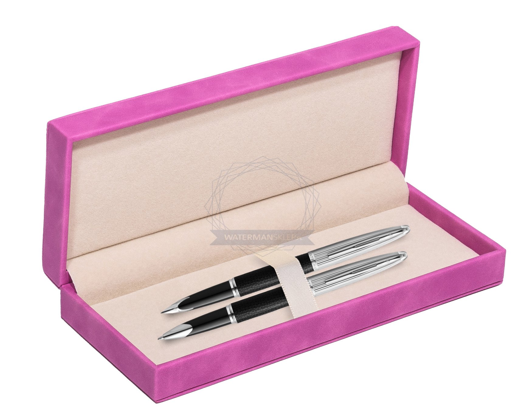 Zestaw prezentowy pióro wieczne + pióro kulkowe Waterman Carene Leather Czarny w pudełku zamszowym fuksja (2099564_2099566_165FUCH)