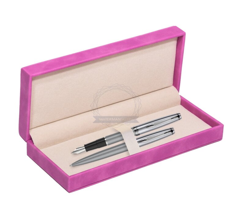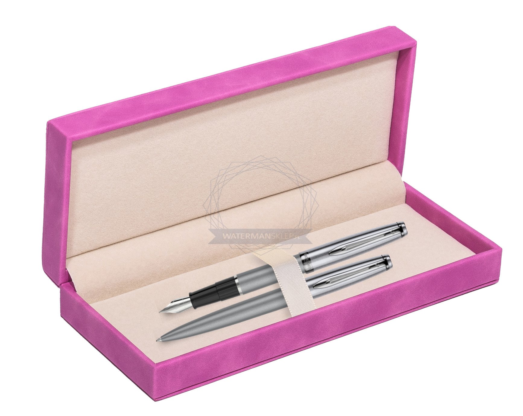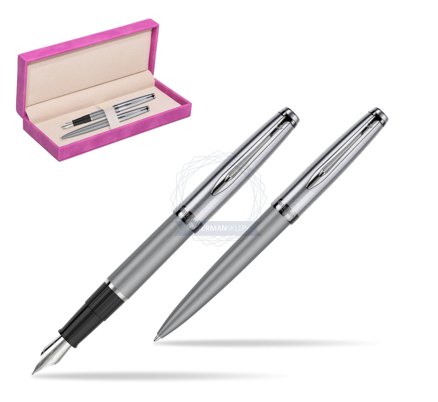 Zestaw prezentowy pióro wieczne +długopis Waterman Embleme DeLuxe Metaliczny Szary w pudełku zamszowym fuksja (2103039_2103042_165FUCH)