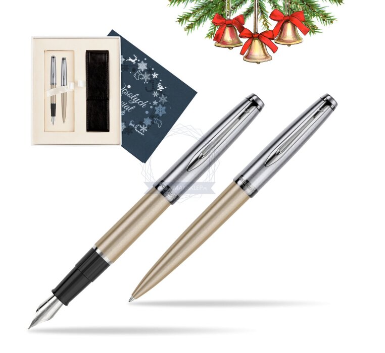 Zestaw prezentowy pióro wieczne +długopis Embleme DeLuxe Metaliczny Złoty w pudełku Wesołych Świąt granatowe (2103035_2103038_S0111S)