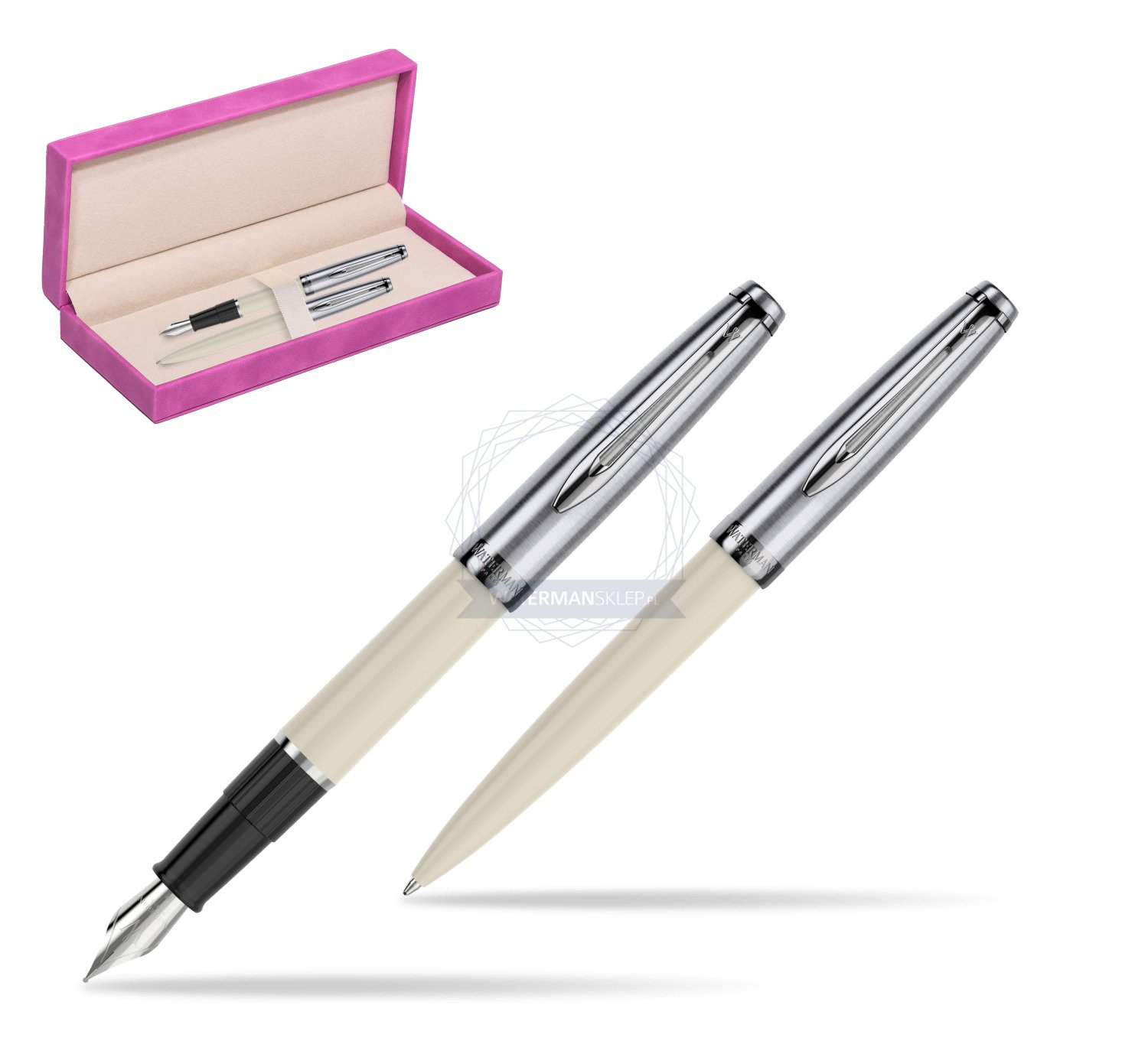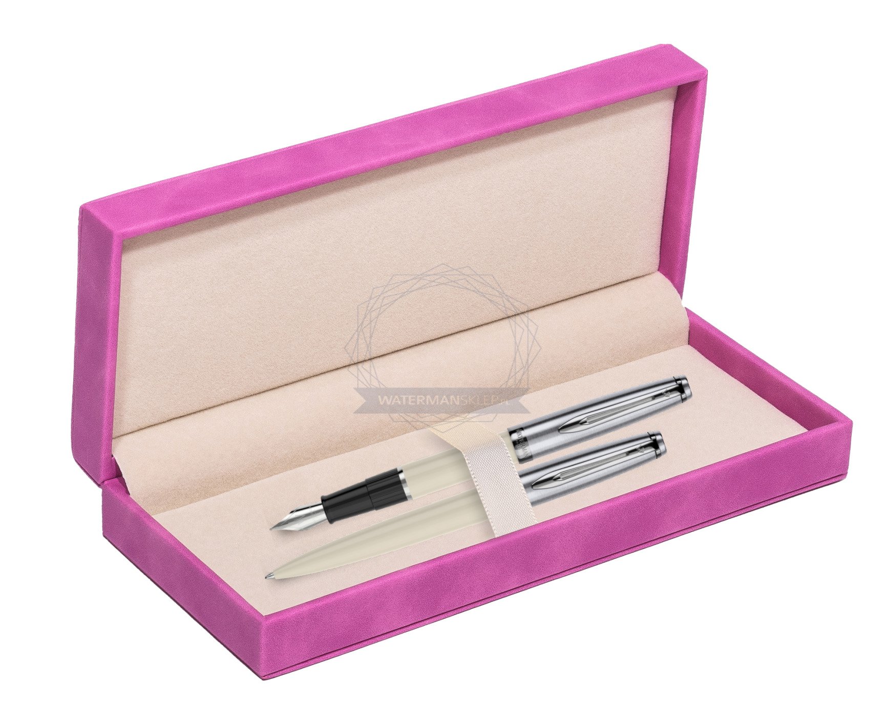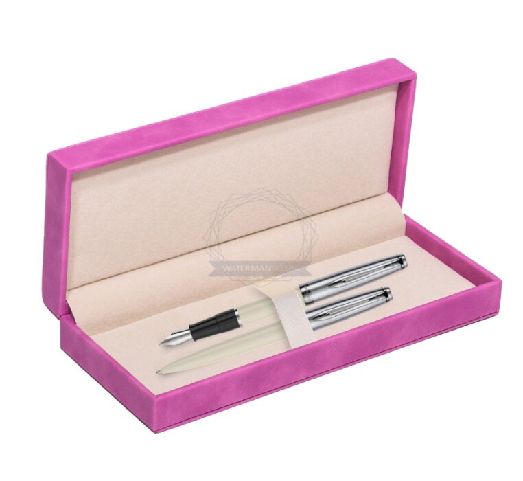 Zestaw prezentowy pióro wieczne +długopis Waterman Embleme Ecru w pudełku zamszowym fuksja (2100327_2100330_165FUCH)