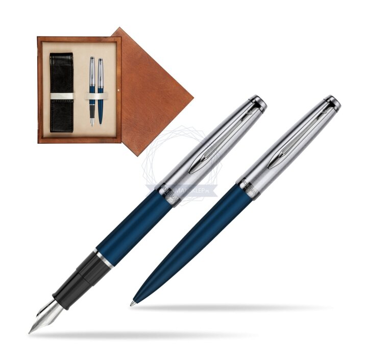 Zestaw prezentowy pióro wieczne +długopis Waterman Embleme Granatowy w pudełku drewnianym Mahoń Double Ecru (2100380_2100403_M2E)