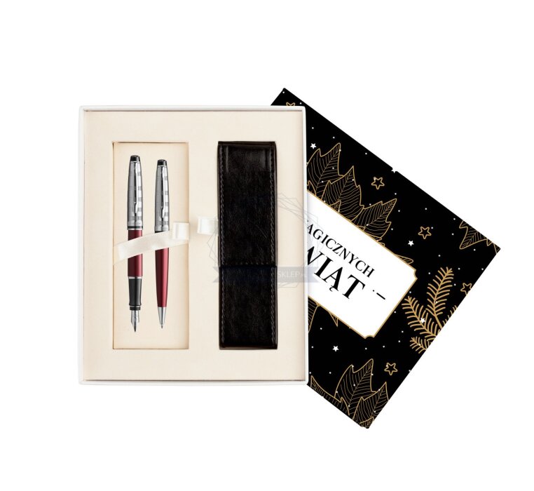 Zestaw prezentowy pióro wieczne + długopis Waterman Expert DeLuxe Ciemnoczerwony w pudełku Magia Świąt