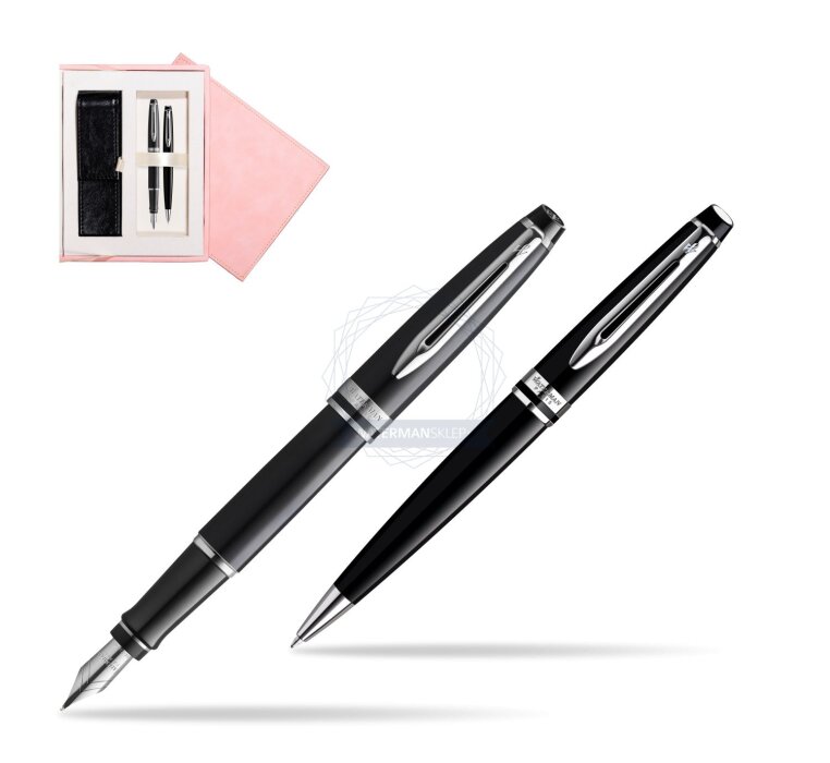 Zestaw prezentowy pióro wieczne + długopis Waterman Expert Czarny CT Złota stalówka 18k w różowym pudełku zamszowym