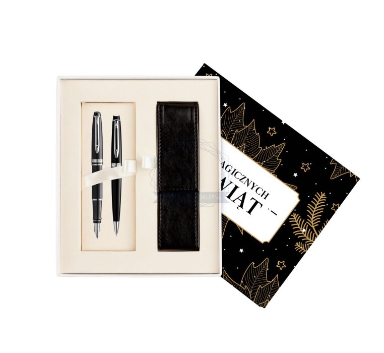 Zestaw prezentowy pióro wieczne + długopis Waterman Expert Czarny CT Złota stalówka 18k w pudełku Magia Świąt