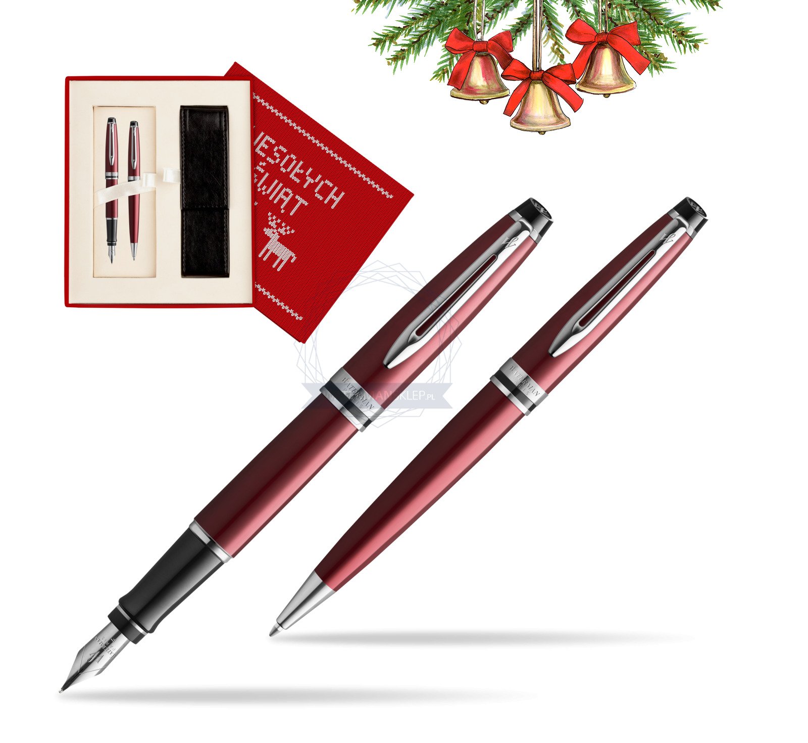 Zestaw prezentowy pióro wieczne + długopis Waterman Expert Ciemnoczerwony CT w pudełku Wesołych Świąt czerwone (2093460_2093653_S0113S)
