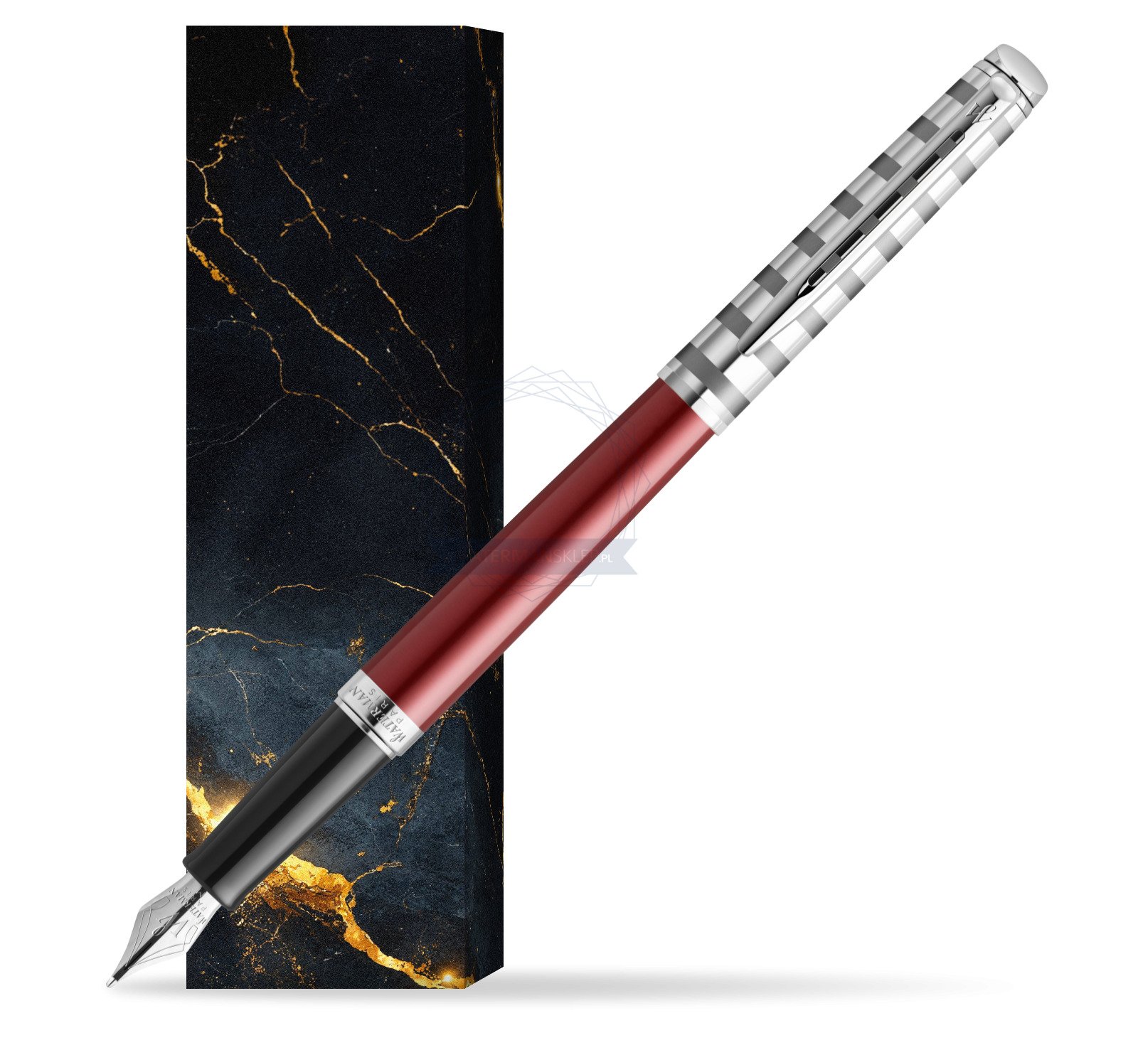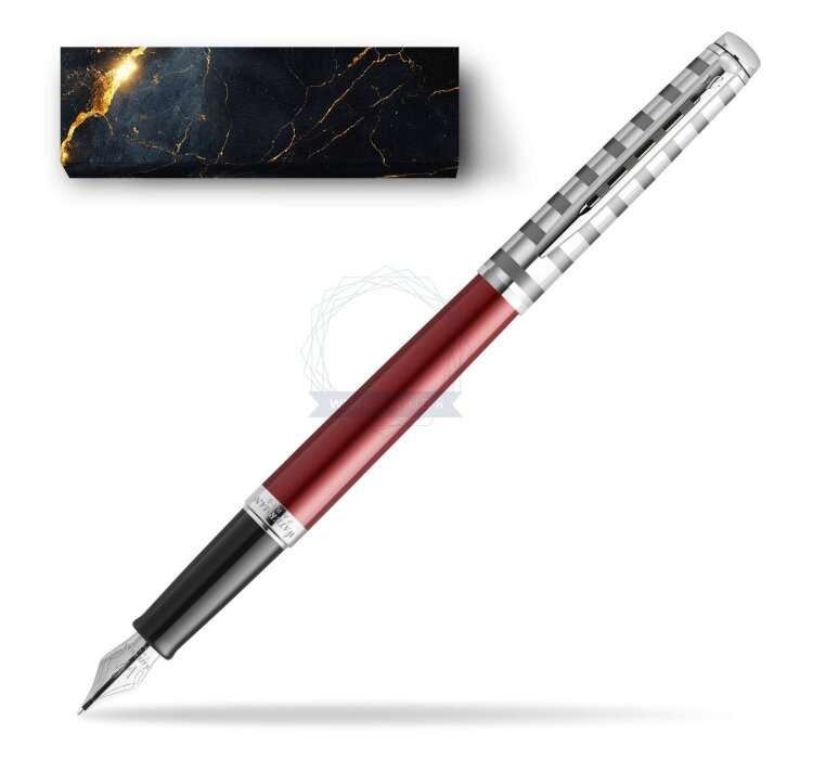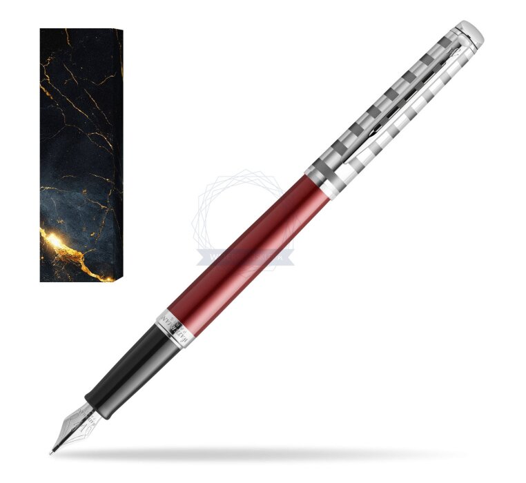 Pióro wieczne Waterman Hemisphere Delux Marine Red - kolekcja French Riviera w obwolucie Czarny Marmur (2117789_O141C)