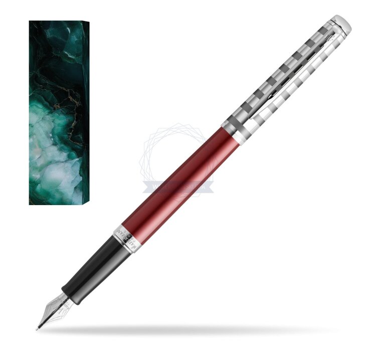 Pióro wieczne Waterman Hemisphere Delux Marine Red - kolekcja French Riviera w obwolucie Turkusowy Marmur (2117789_O142C)