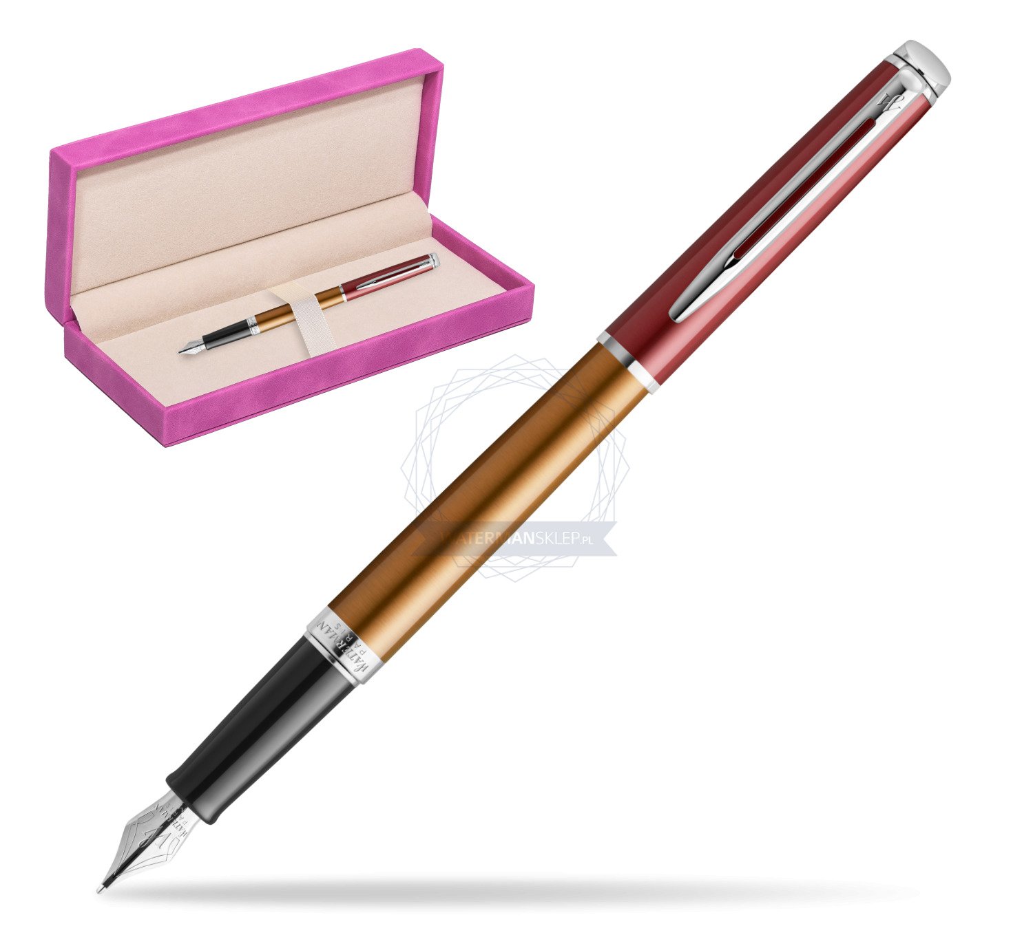Pióro wieczne Waterman Hemisphere Sunset Orange - kolekcja French Riviera w pudełku zamszowym fuksja (2118233_165FUCH)