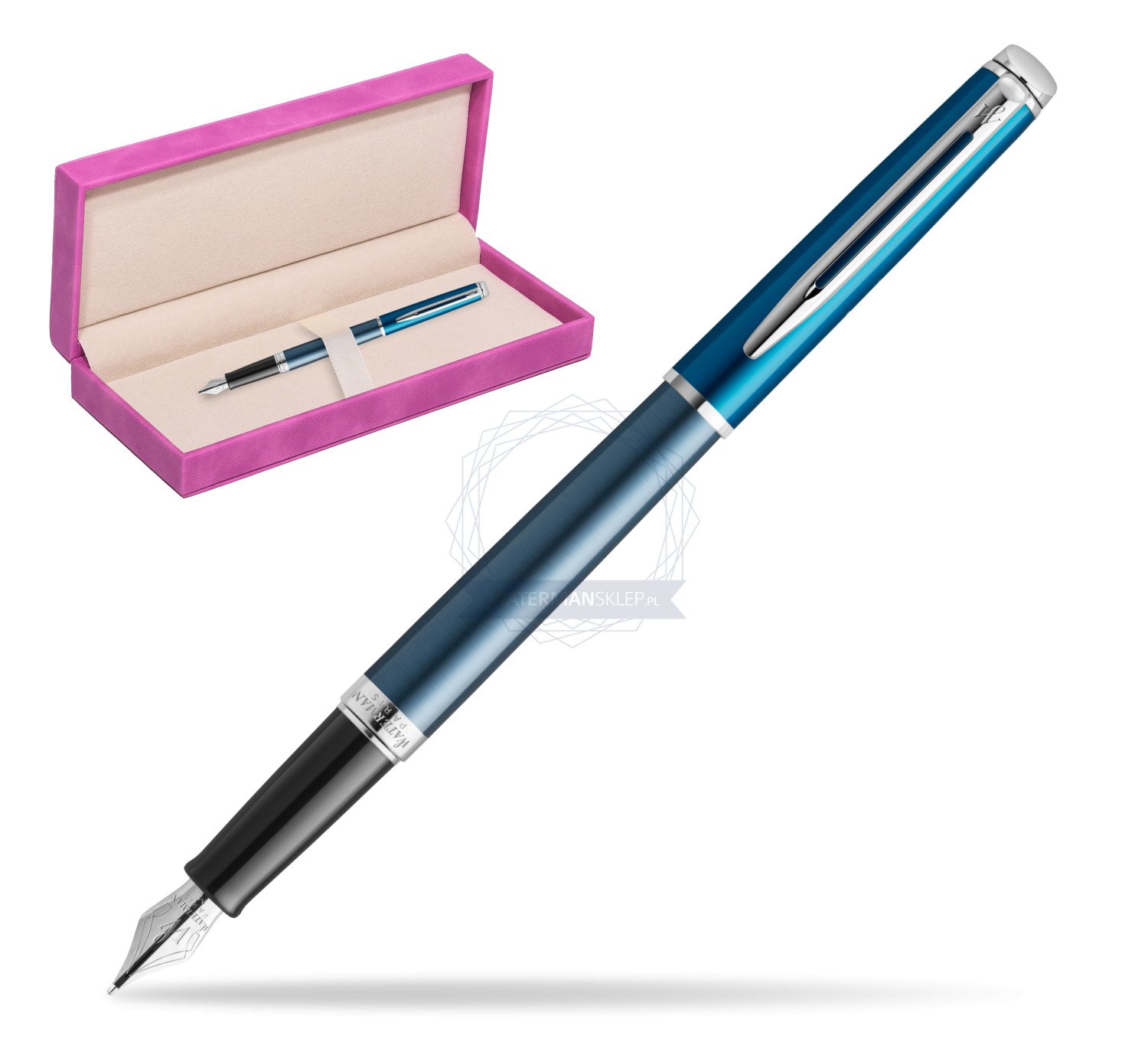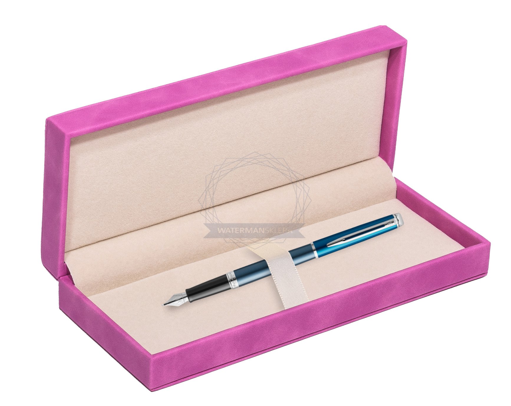 Pióro wieczne Waterman Hemisphere Sea Blue - kolekcja French Riviera w pudełku zamszowym fuksja (2118237_165FUCH)