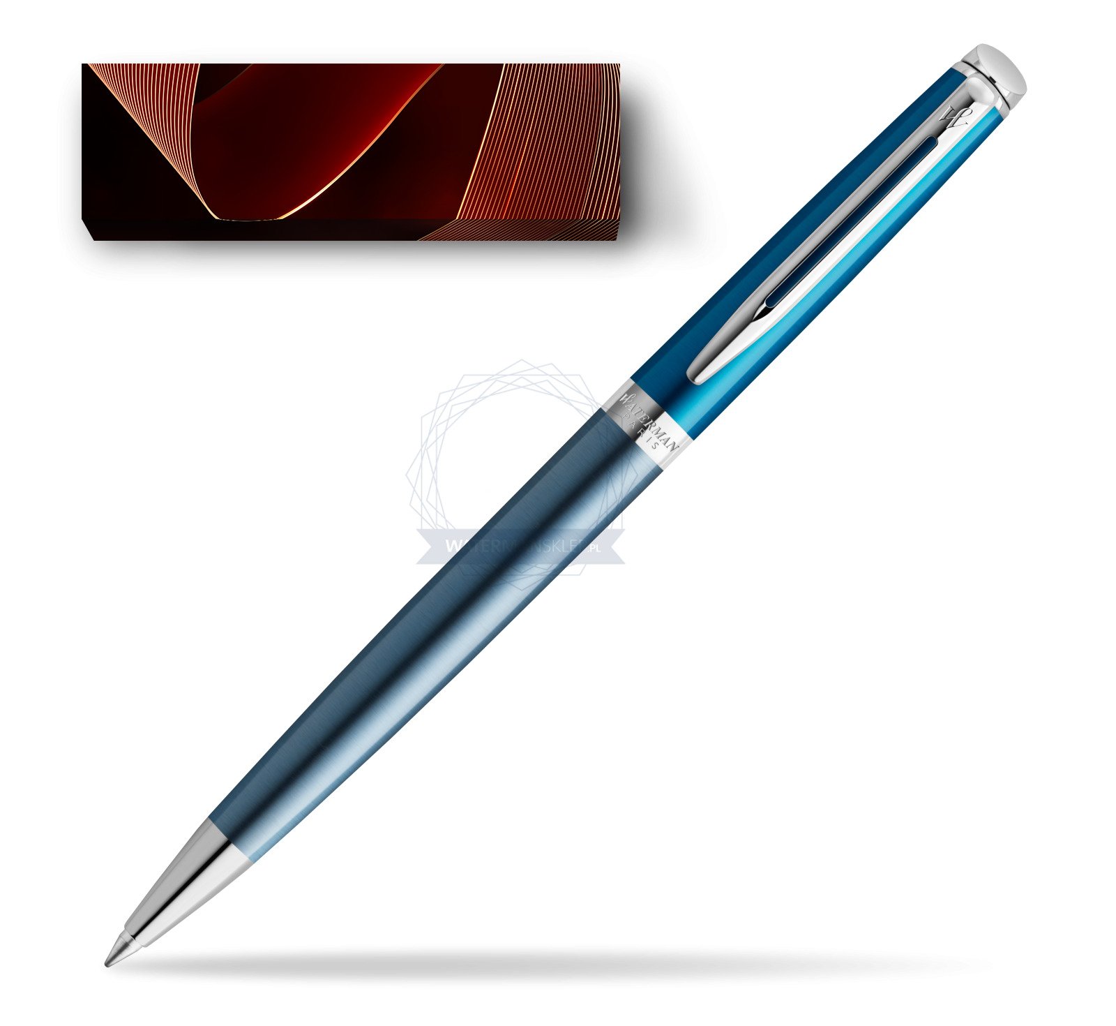 Produkt sprzedawany w eleganckim, niebieskim pudełku Waterman.